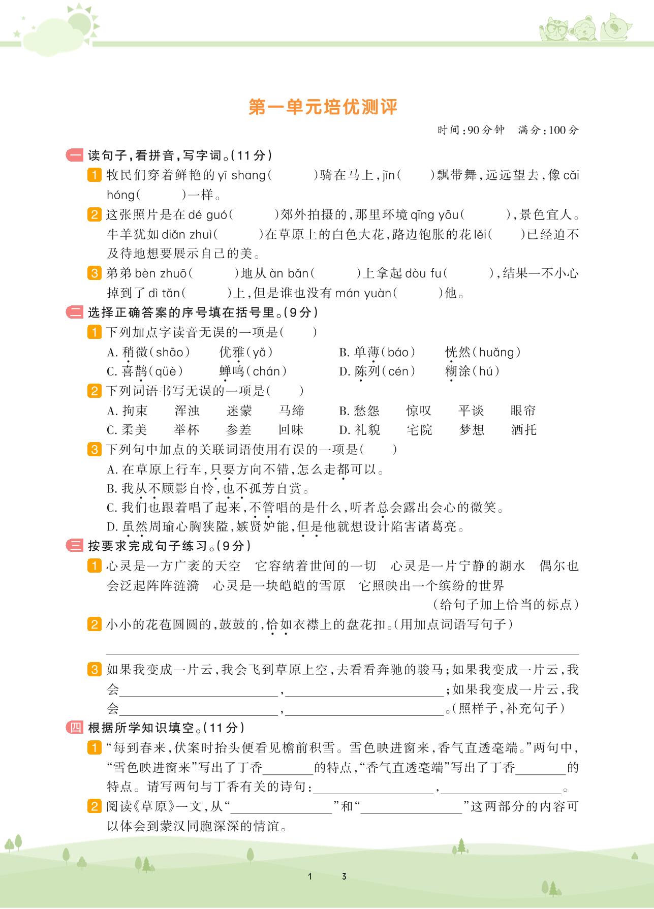 六年级语文人教版上册单元卷