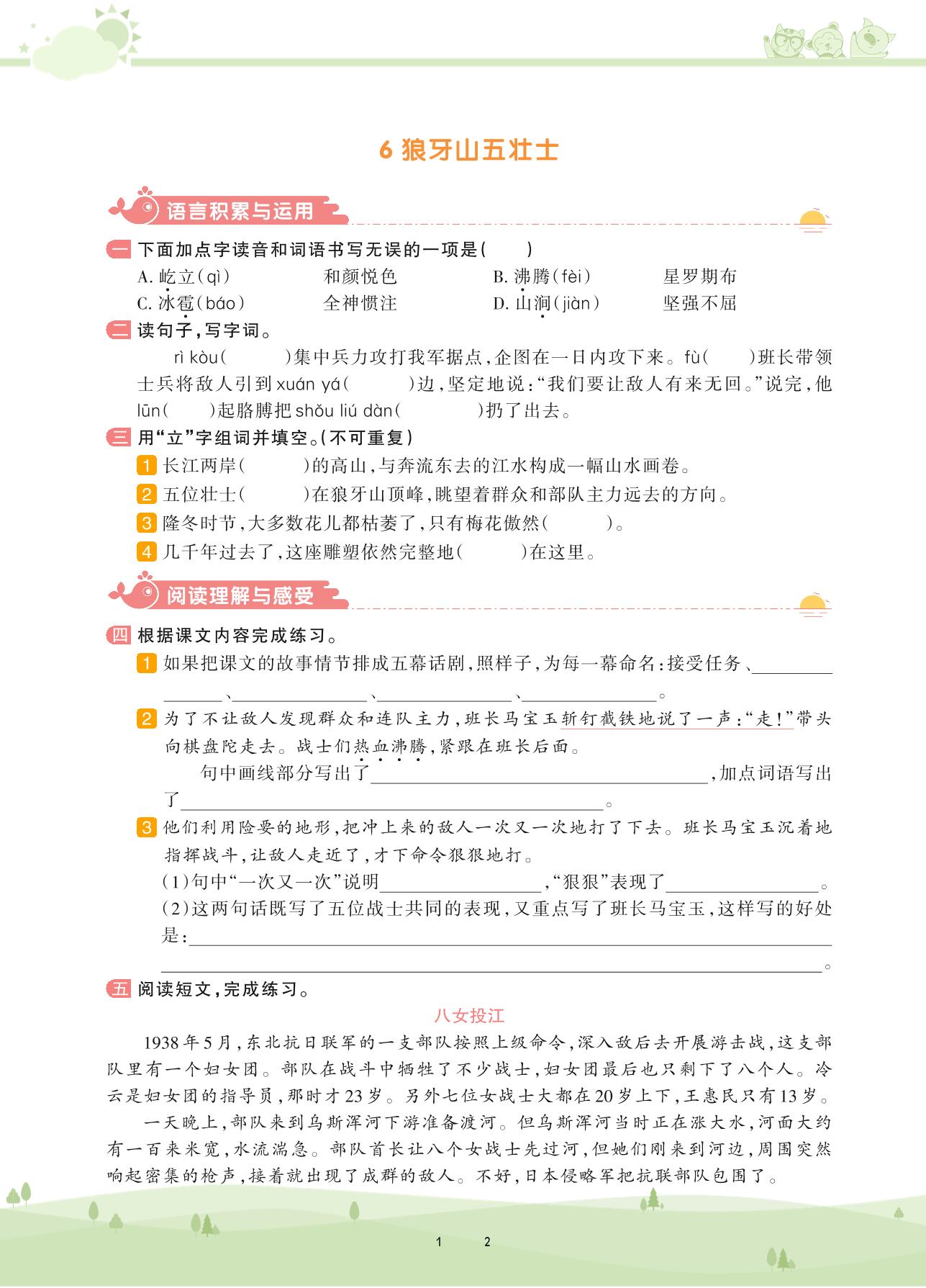 2020上册六年级语文人教版 第二单元——6 狼牙山五壮士
