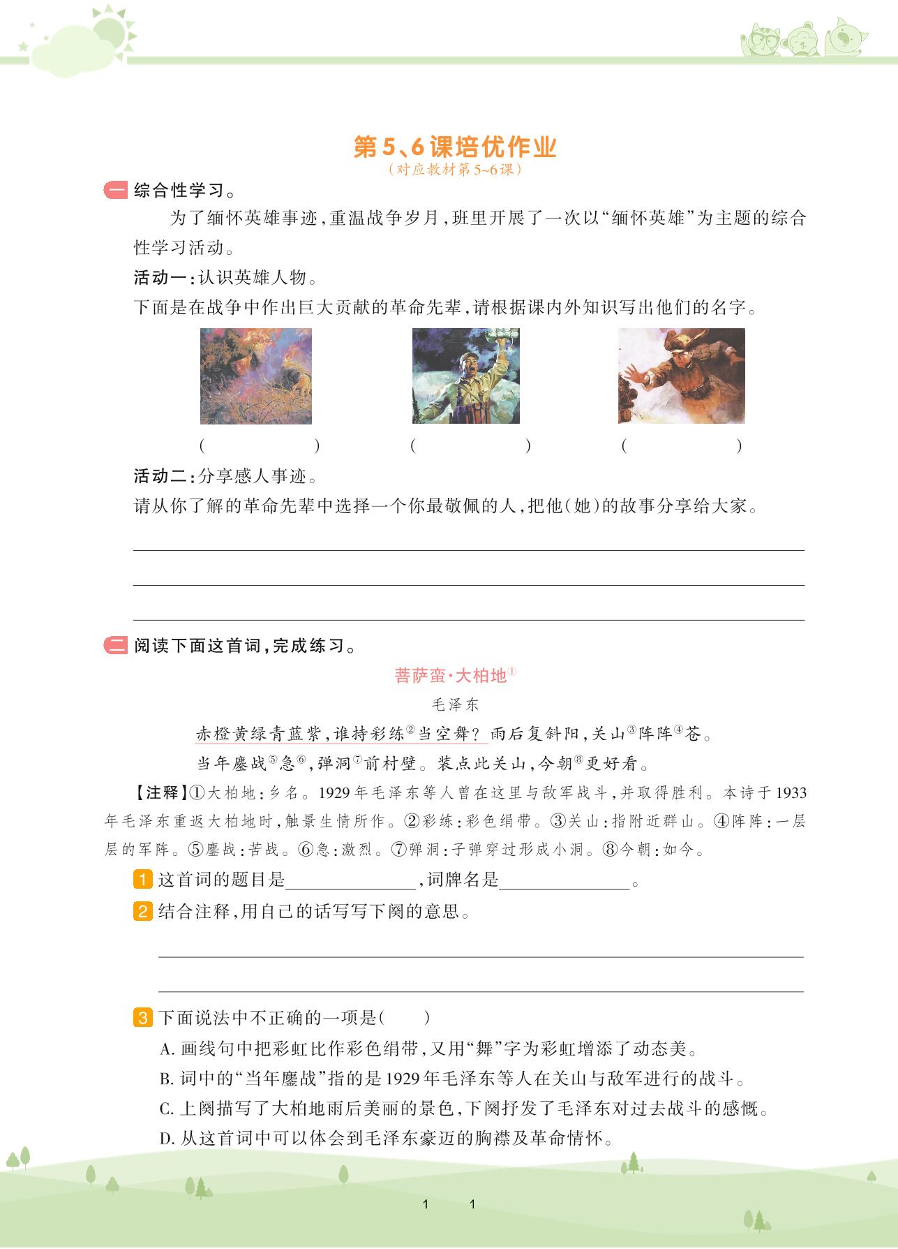 2020上册六年级语文人教版 第二单元——第5、6课培优作业