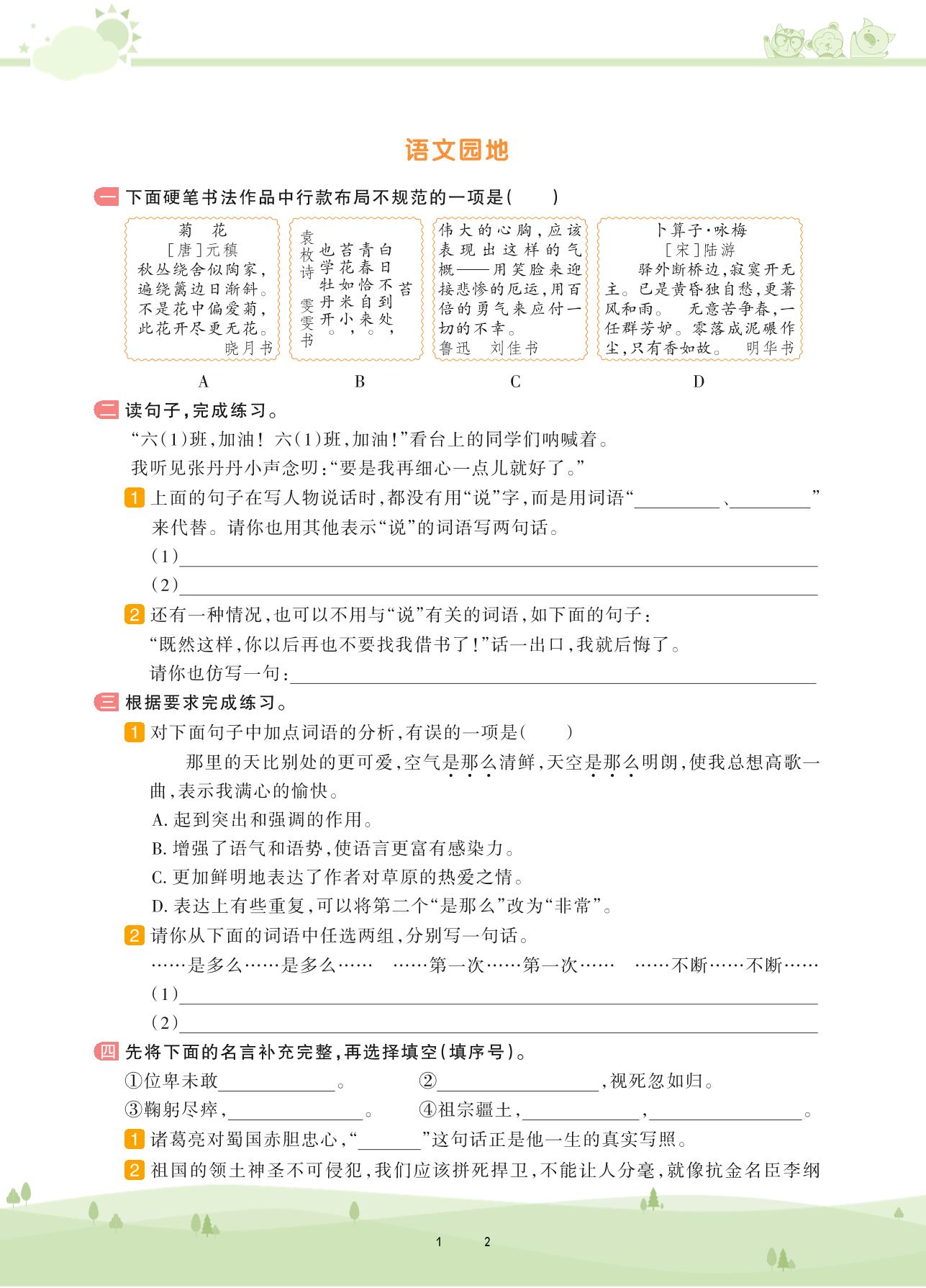 2020上册六年级语文人教版 第二单元——语文园地_R210928101421190