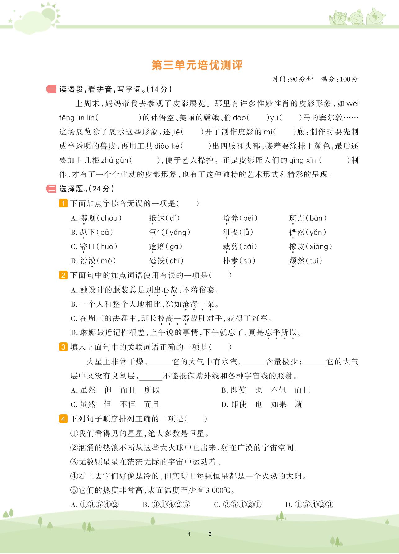 六年级语文人教版上册单元卷