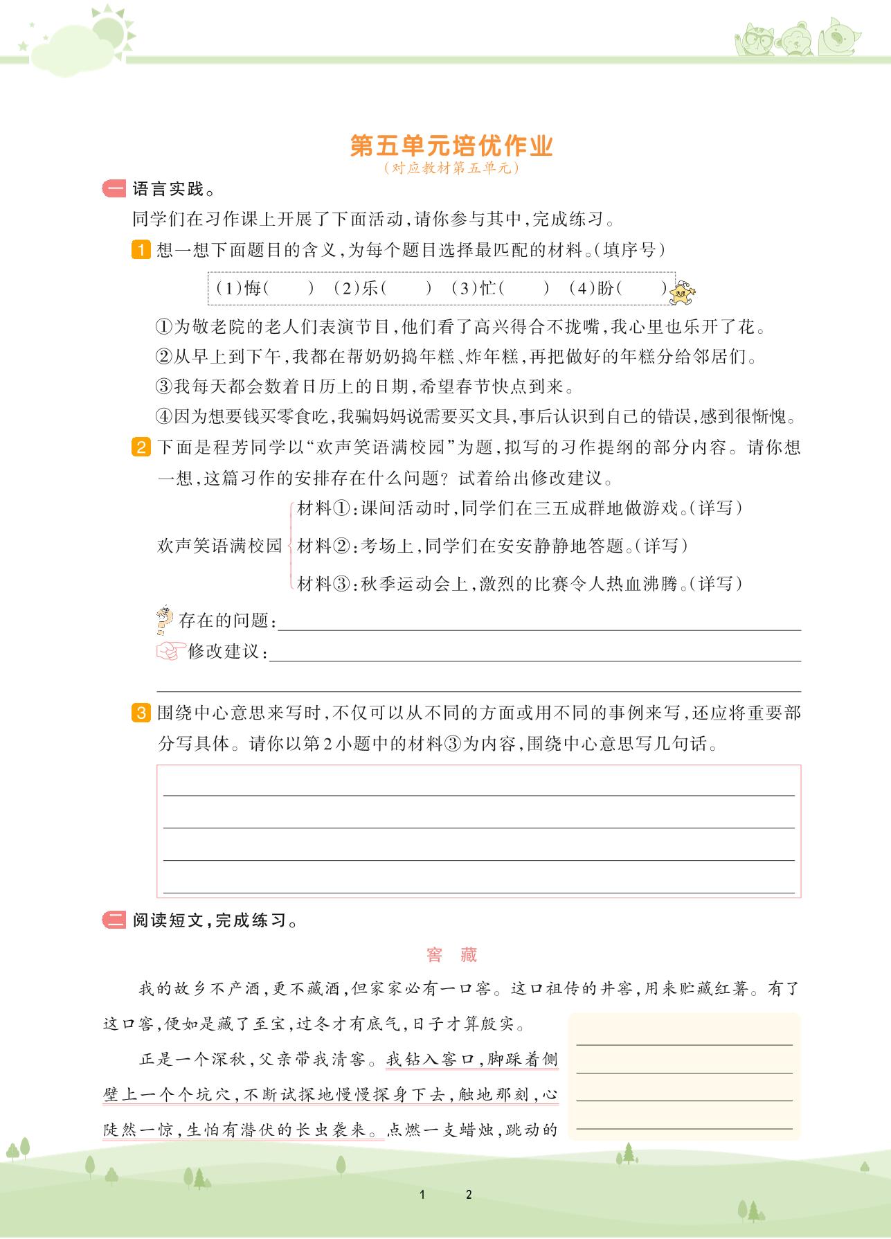 2020上册六年级语文人教版 第五单元培优作业