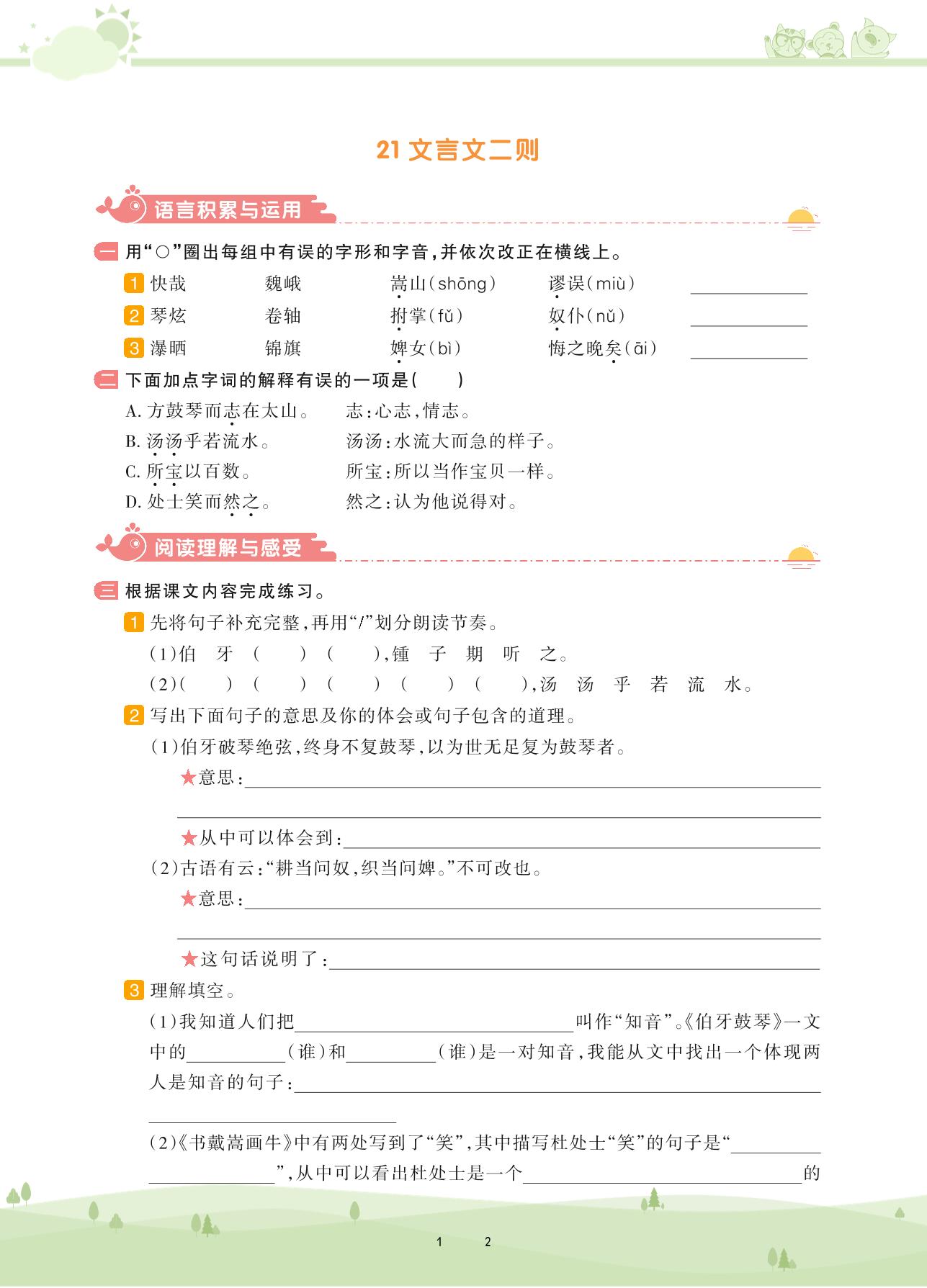 2020上册六年级语文人教版 第七单元——21 文言文二则