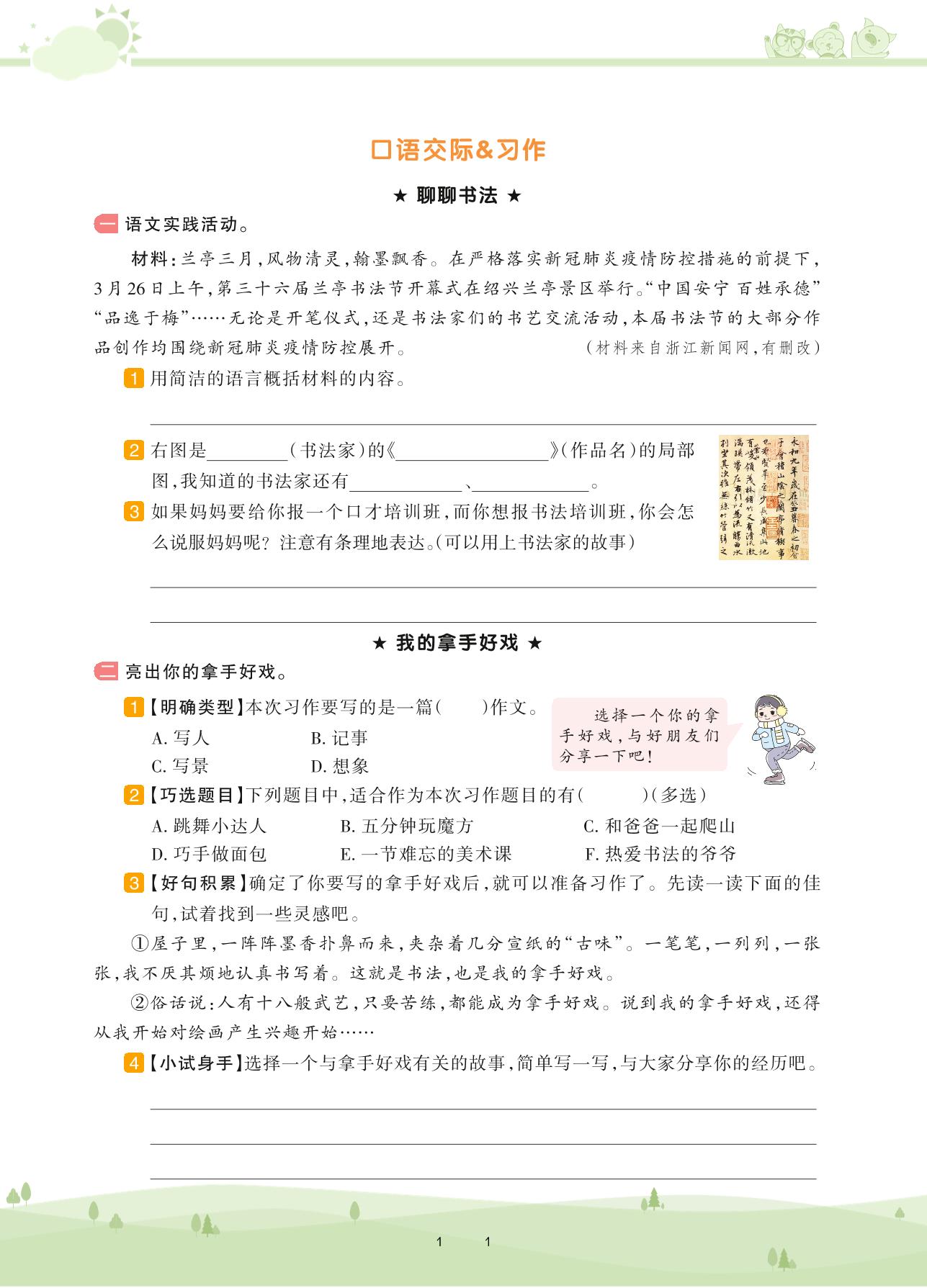 2020上册六年级语文人教版 第七单元——口语交际&习作