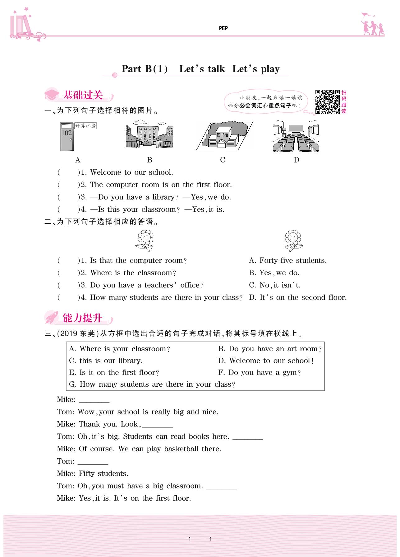 2021下册四年级英语PEP版 Unit 1—Part B(1) Let’s talk Let’s play