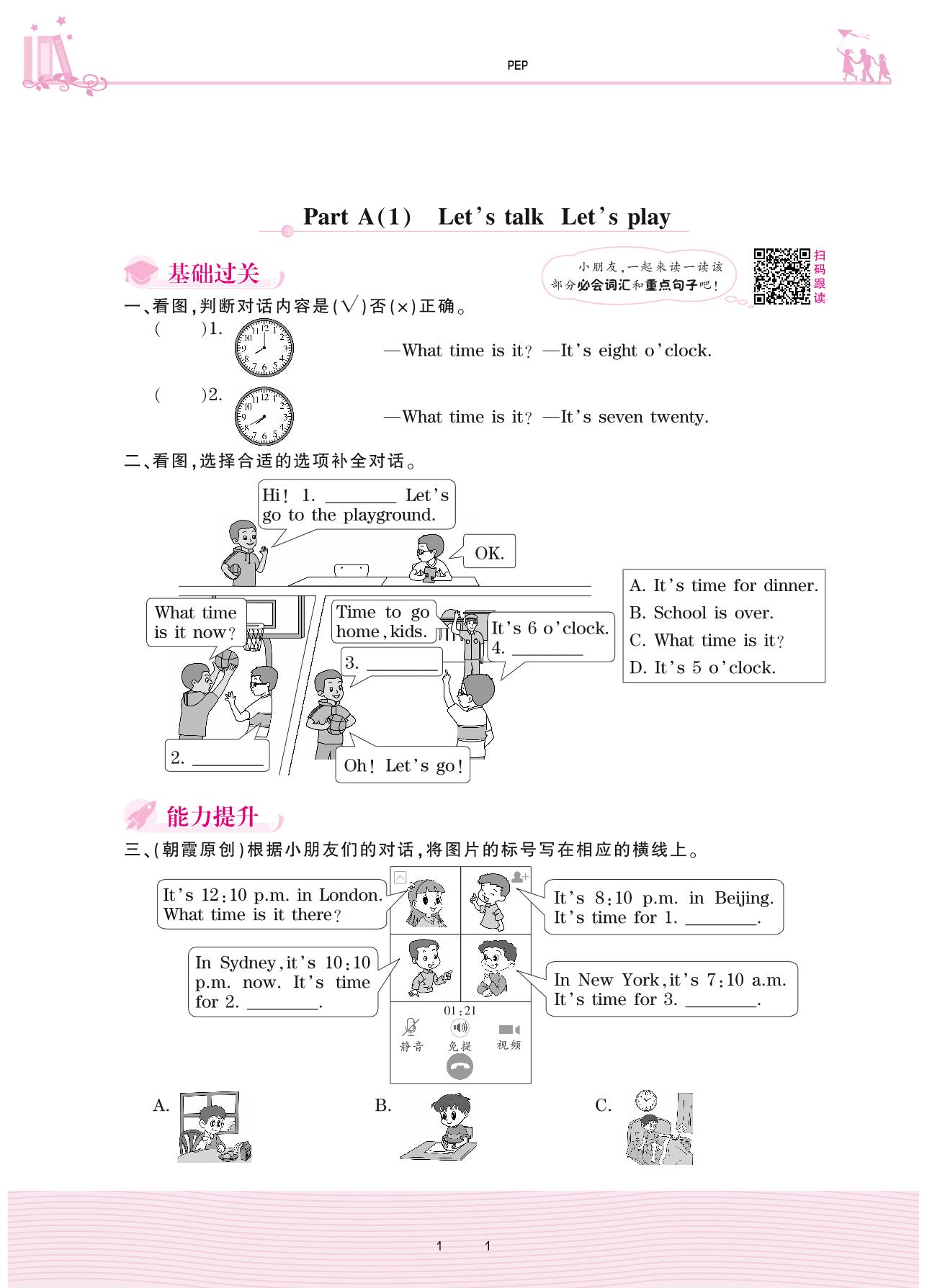 2021下册四年级英语PEP版 Unit 2—Part A(1) Let’s talk Let’s play