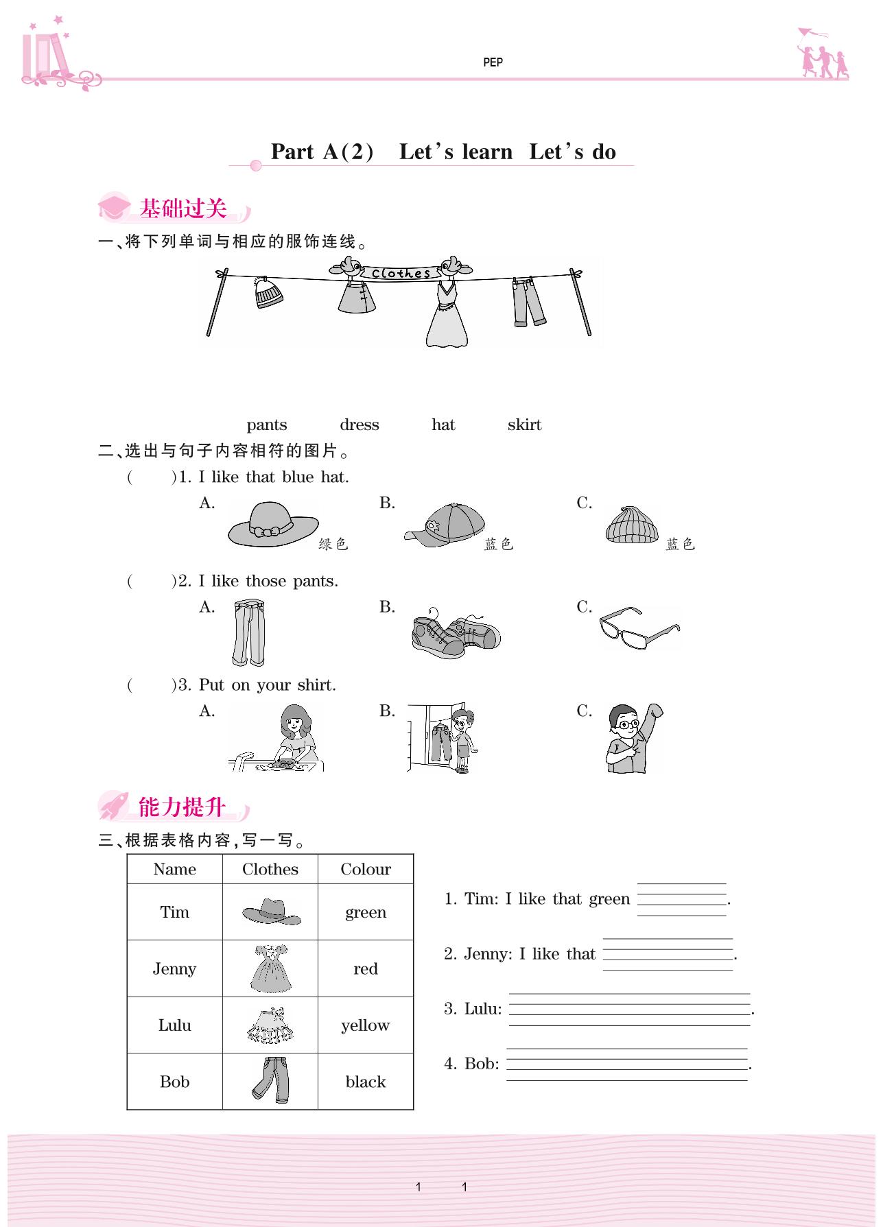 2021下册四年级英语PEP版 Unit 5—Part A(2) Let’s learn Let’s do