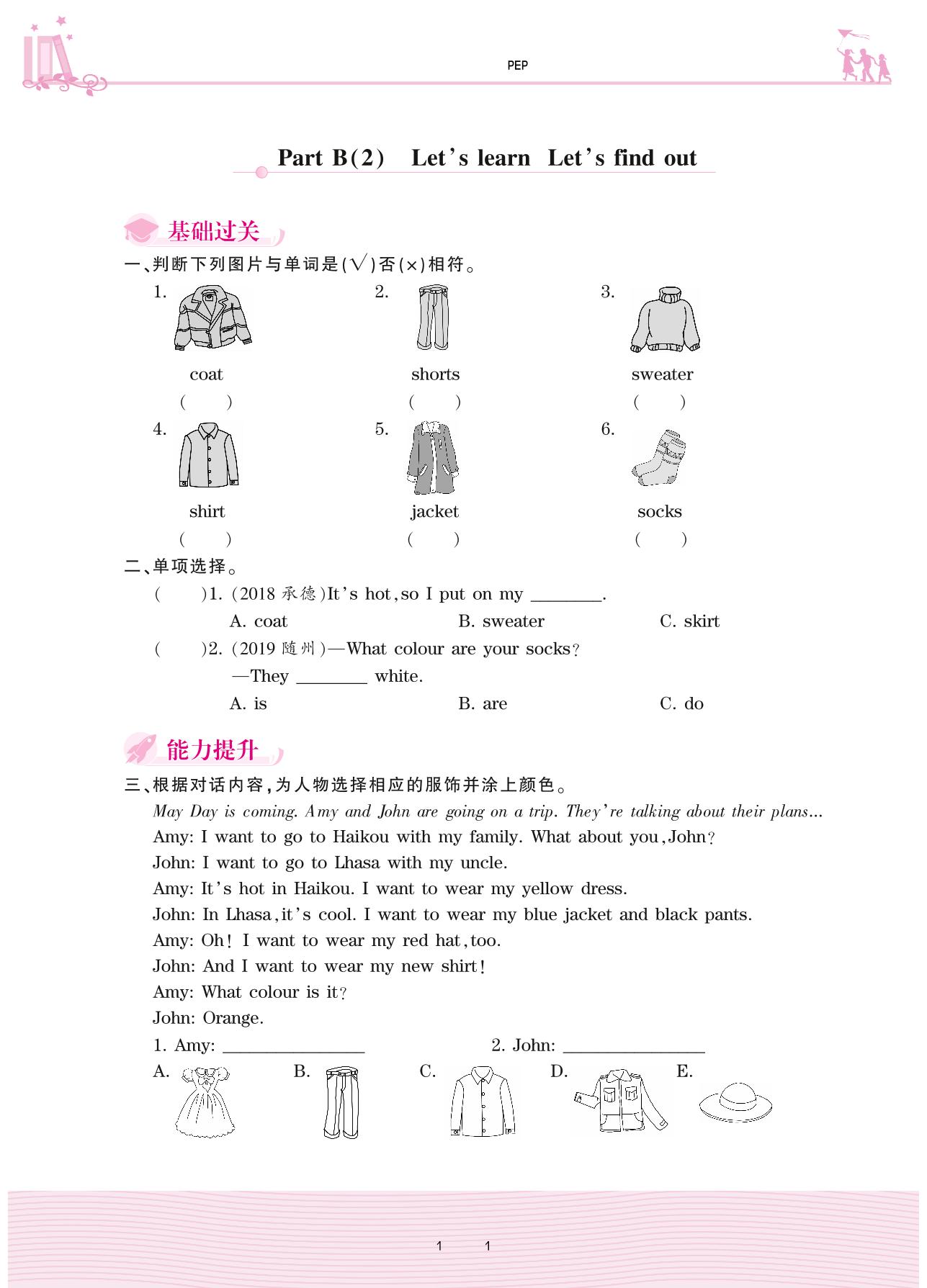 2021下册四年级英语PEP版 Unit 5—Part B(2) Let’s learn Let’s find out
