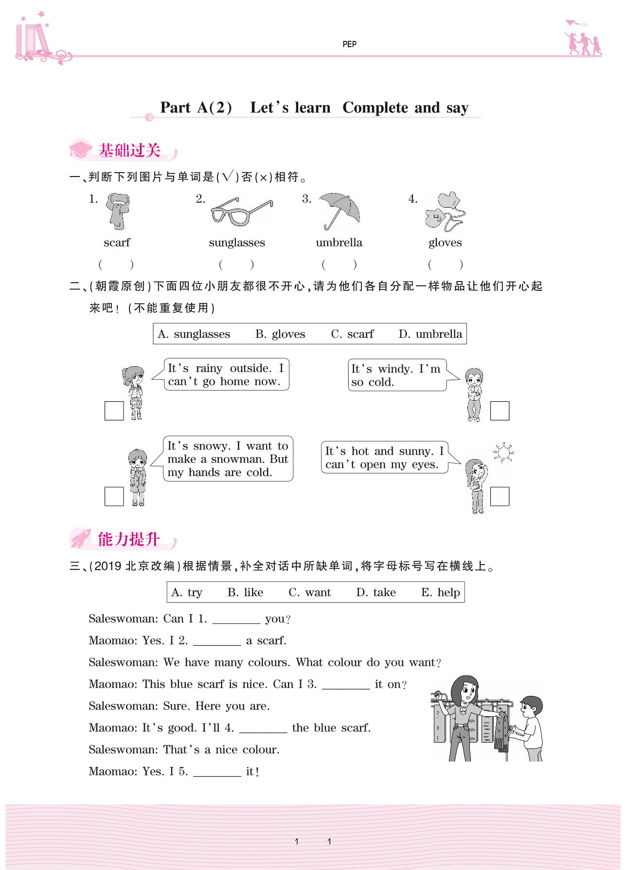 2021下册四年级英语PEP版 Unit 6—Part A(2) Let’s learn Complete and say