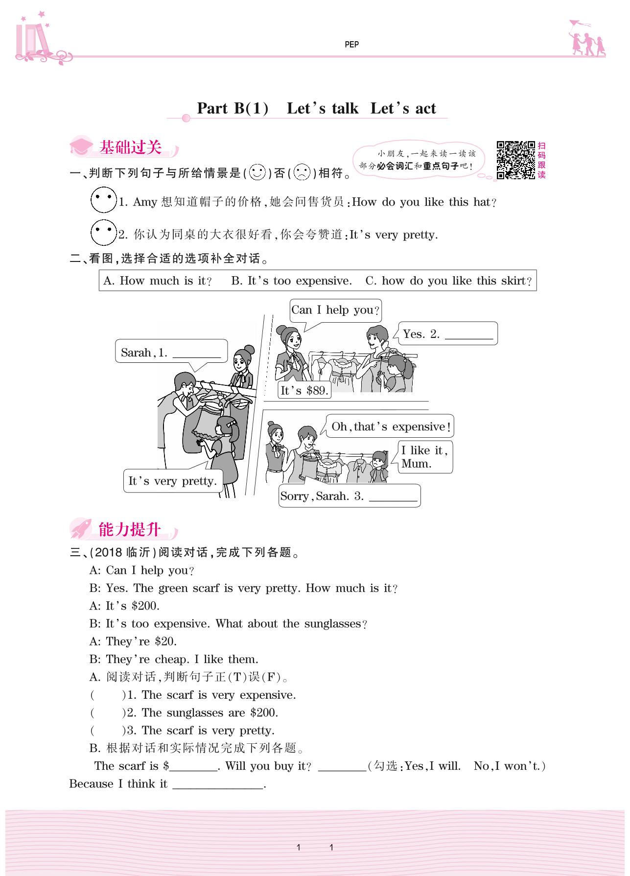 2021下册四年级英语PEP版 Unit 6—Part B(1) Let’s talk Let’s act