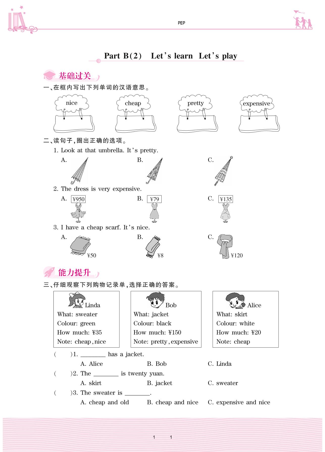 2021下册四年级英语PEP版 Unit 6—Part B(2) Let’s learn Let’s play