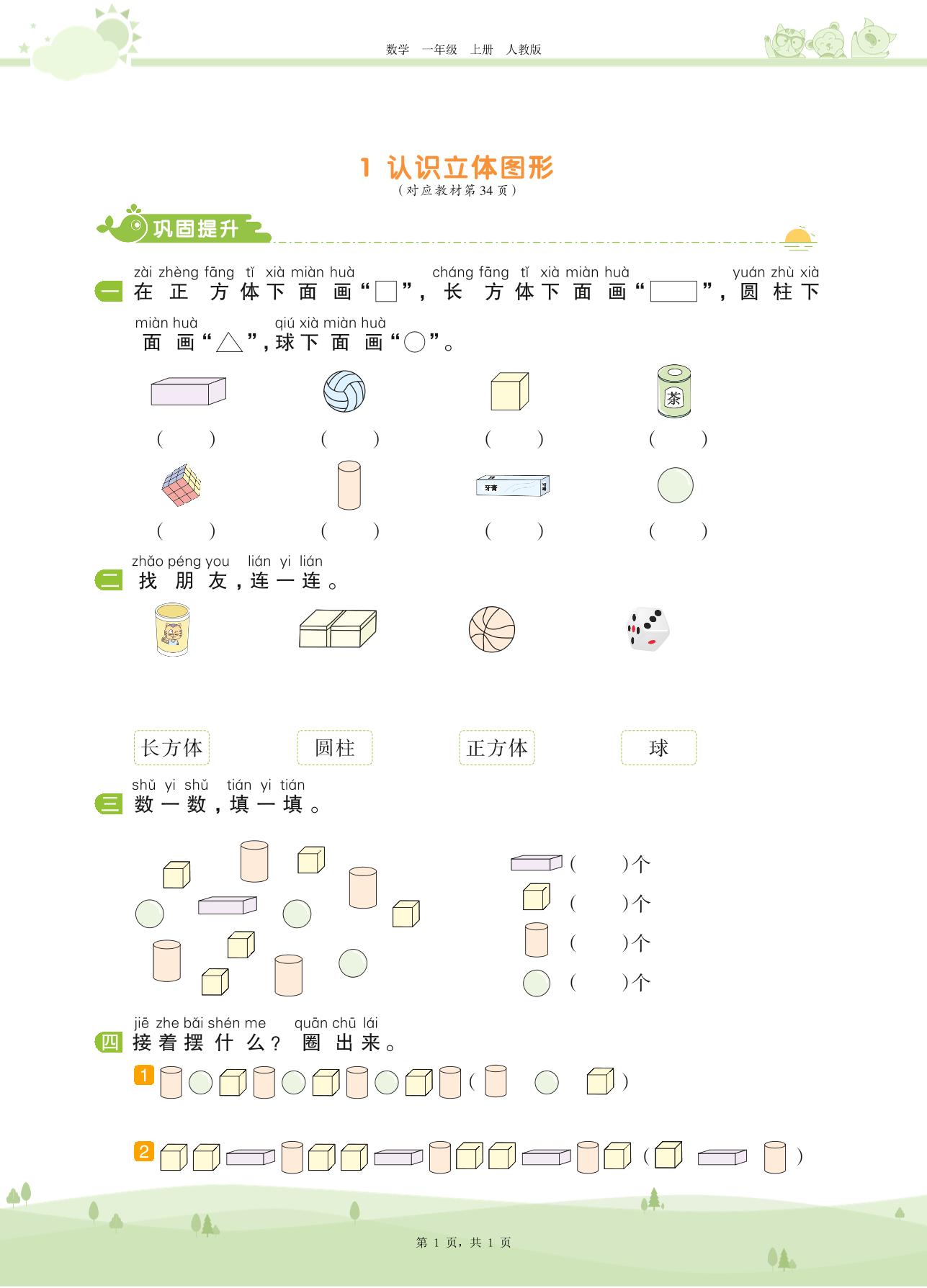 2020上册一年级数学人教版 第四单元——1 认识立体图形