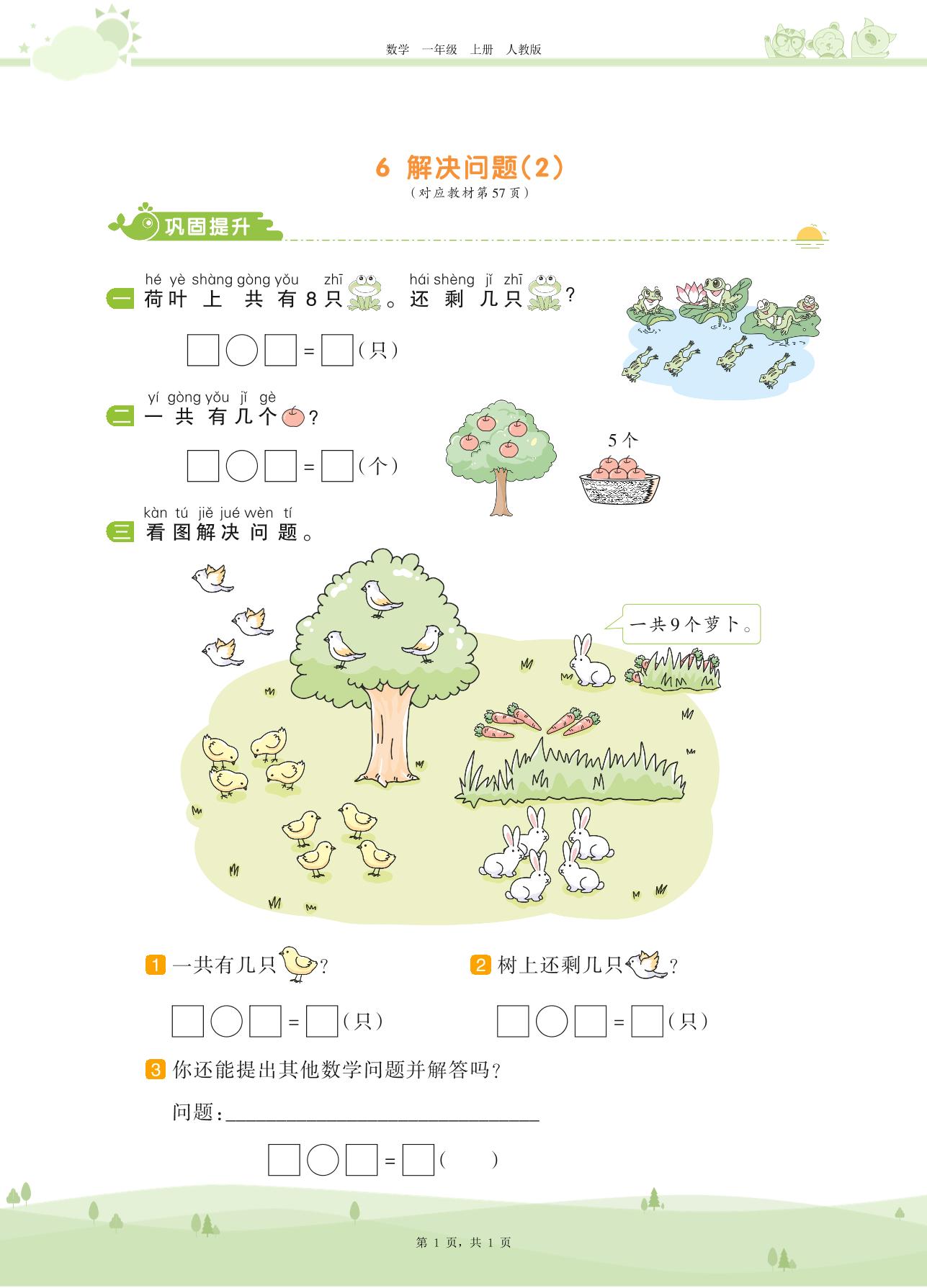 2020上册一年级数学人教版 第五单元——6 解决问题(2)