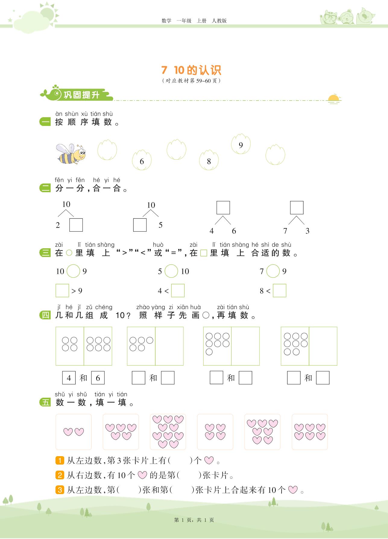 2020上册一年级数学人教版 第五单元——7 10的认识