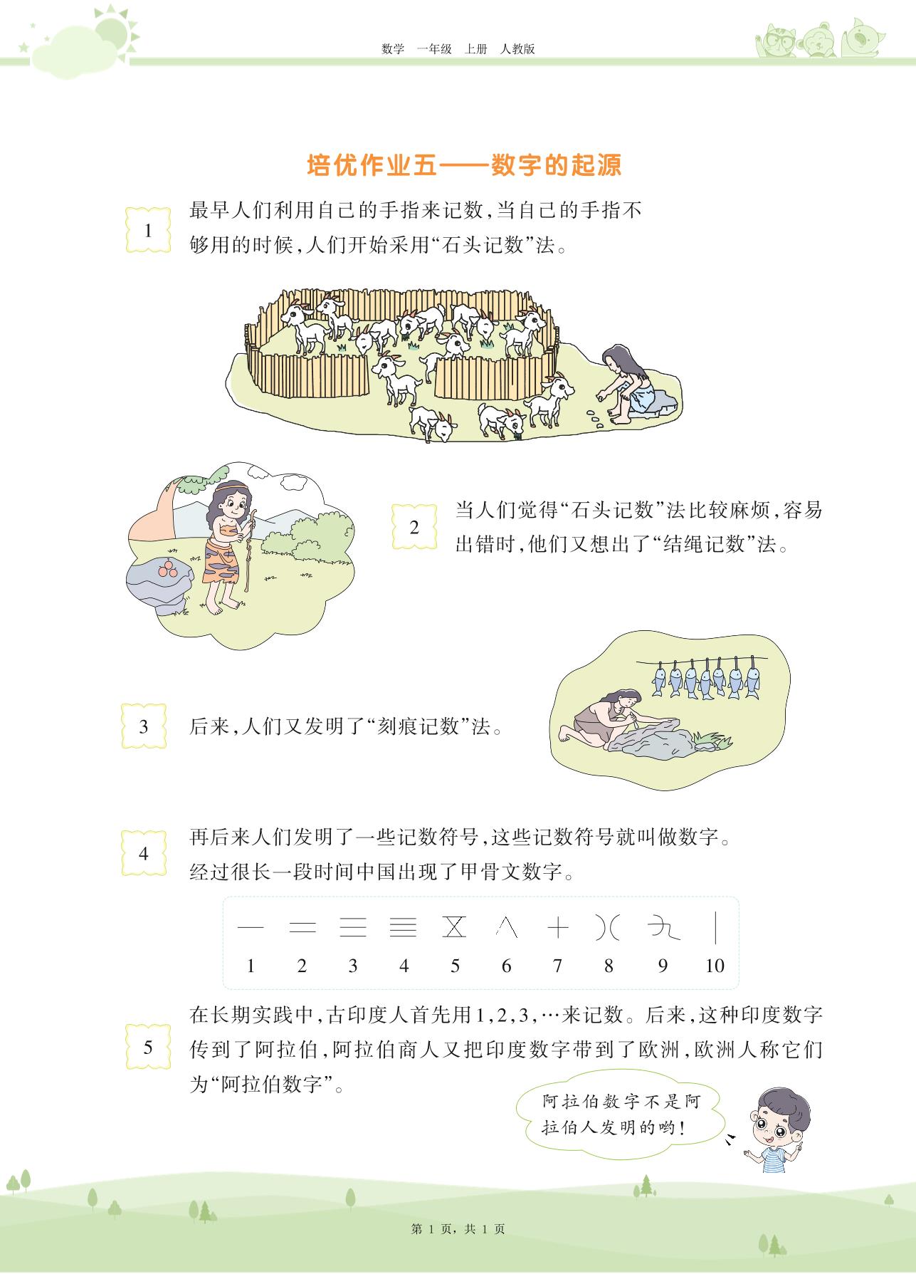 2020上册一年级数学人教版 第五单元——培优作业五——数字的起源
