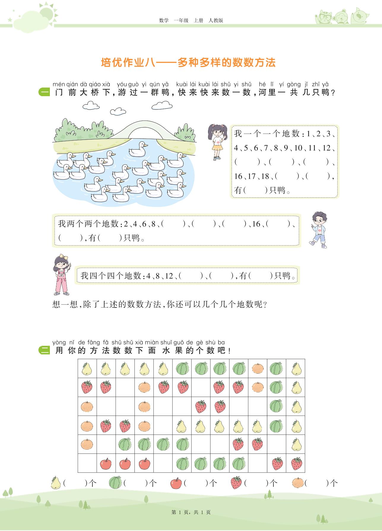 2020上册一年级数学人教版 第六单元——培优作业八——多种多样的数数方法