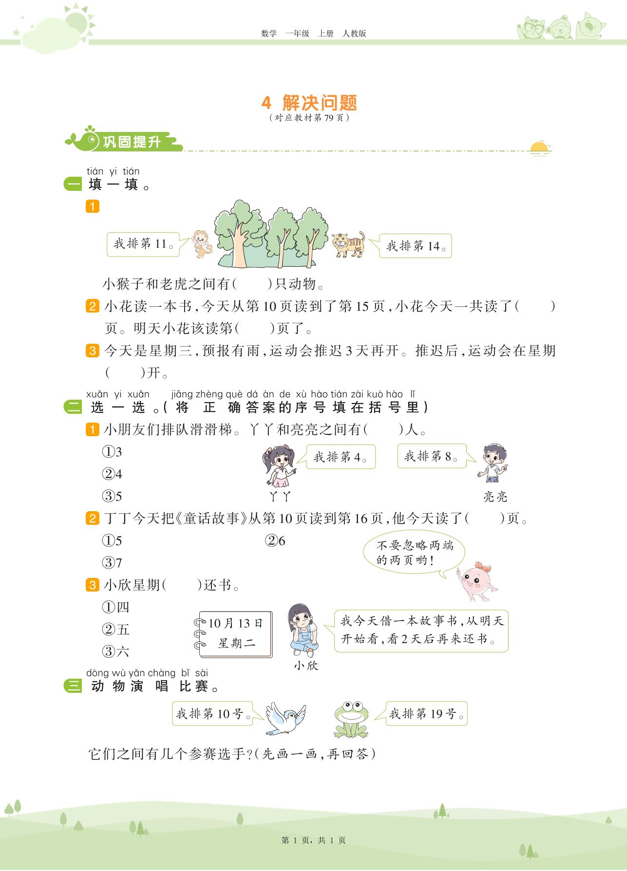 一年级数学人教版上册课时作业
