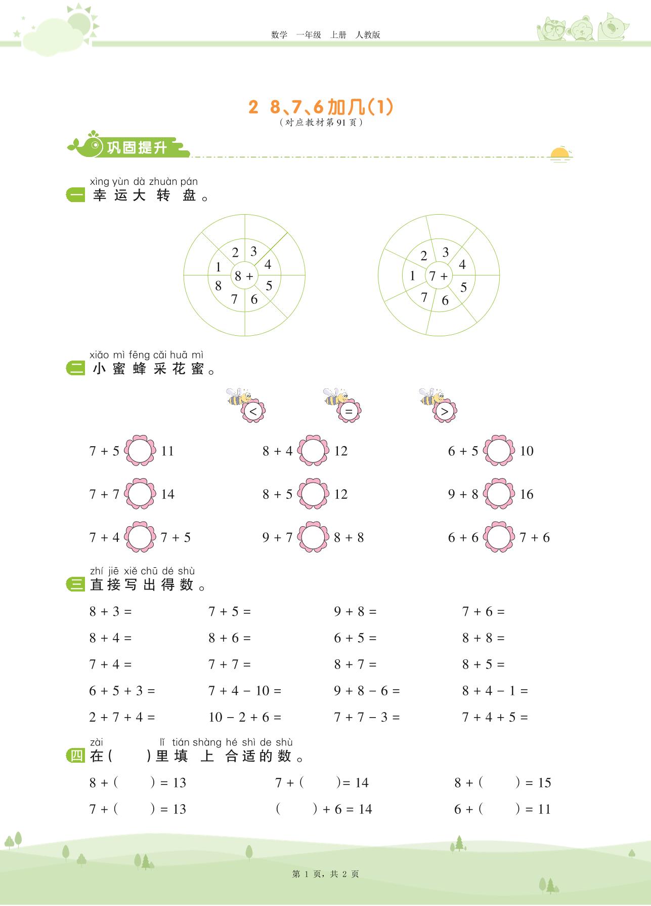 2020上册一年级数学人教版 第八单元——2 8、7、6加几(1)