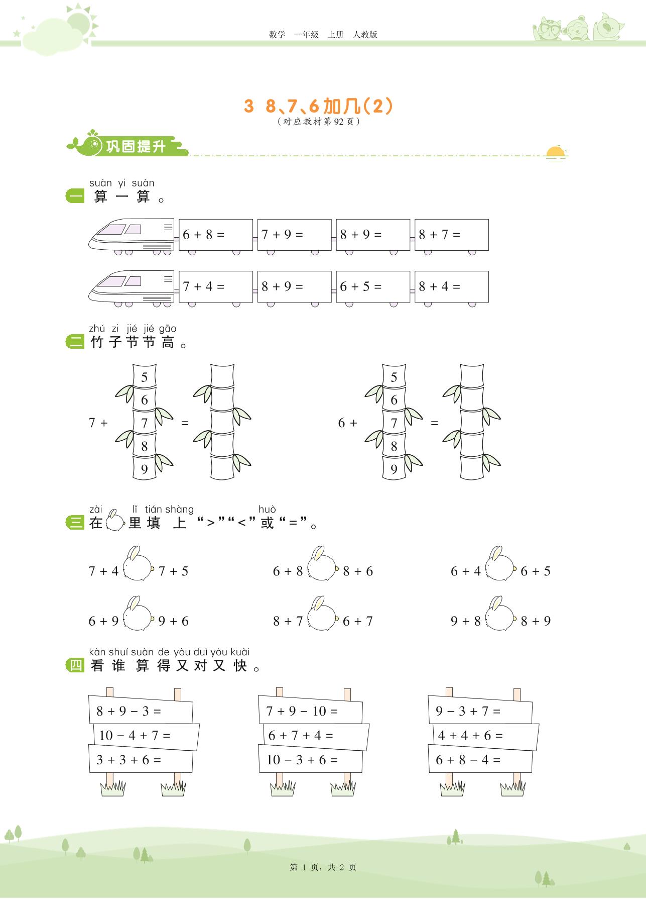 2020上册一年级数学人教版 第八单元——3 8、7、6加几(2)