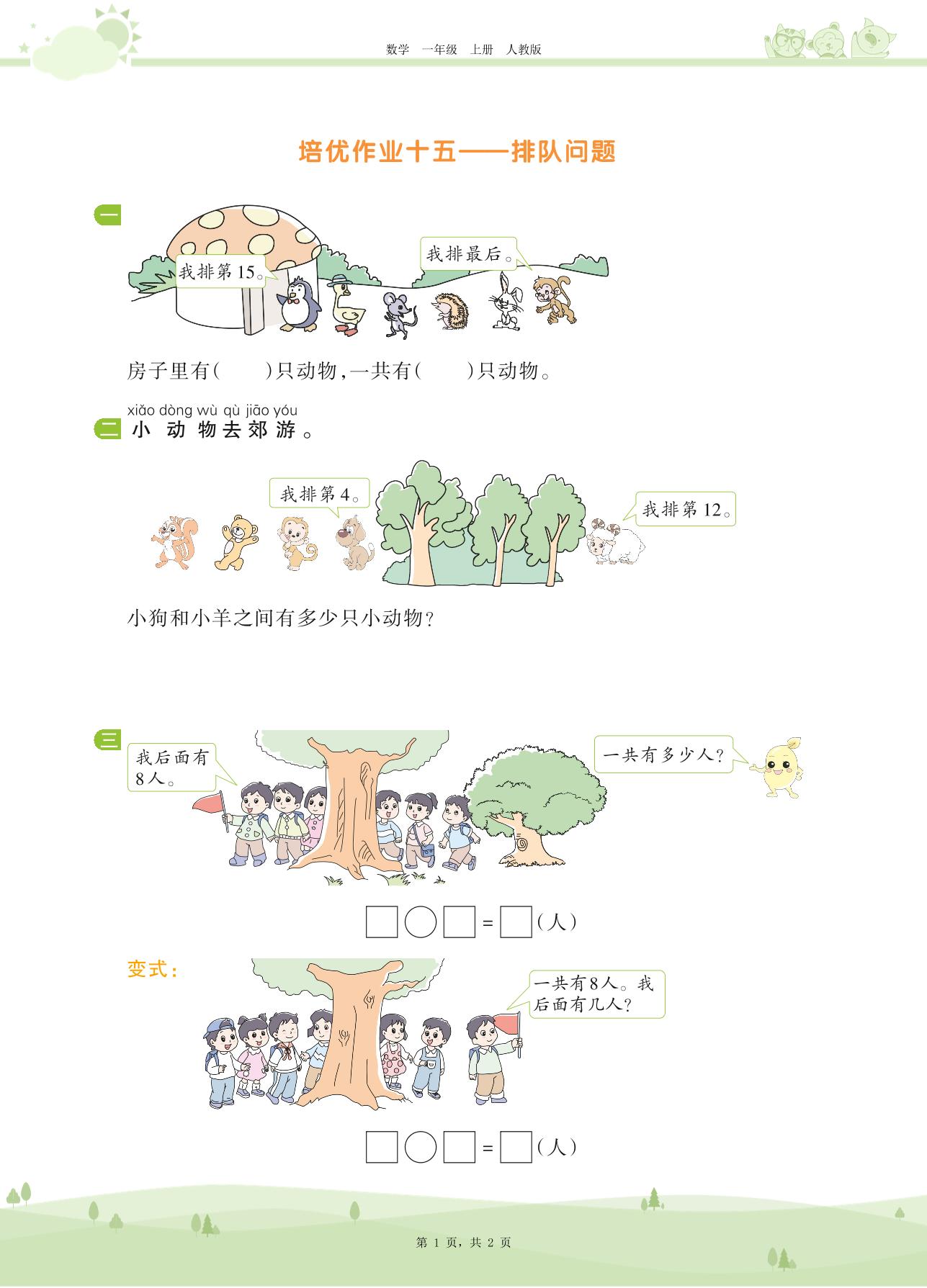 2020上册一年级数学人教版 第八单元——培优作业十五——排队问题