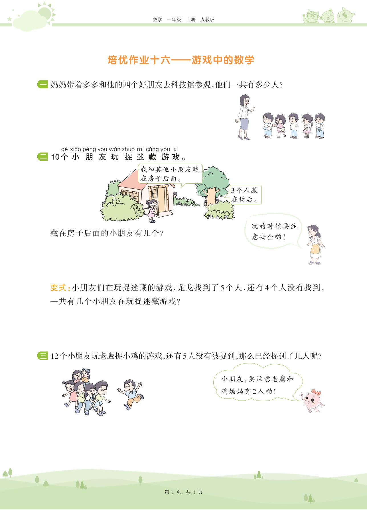 2020上册一年级数学人教版 第八单元——培优作业十六——游戏中的数学