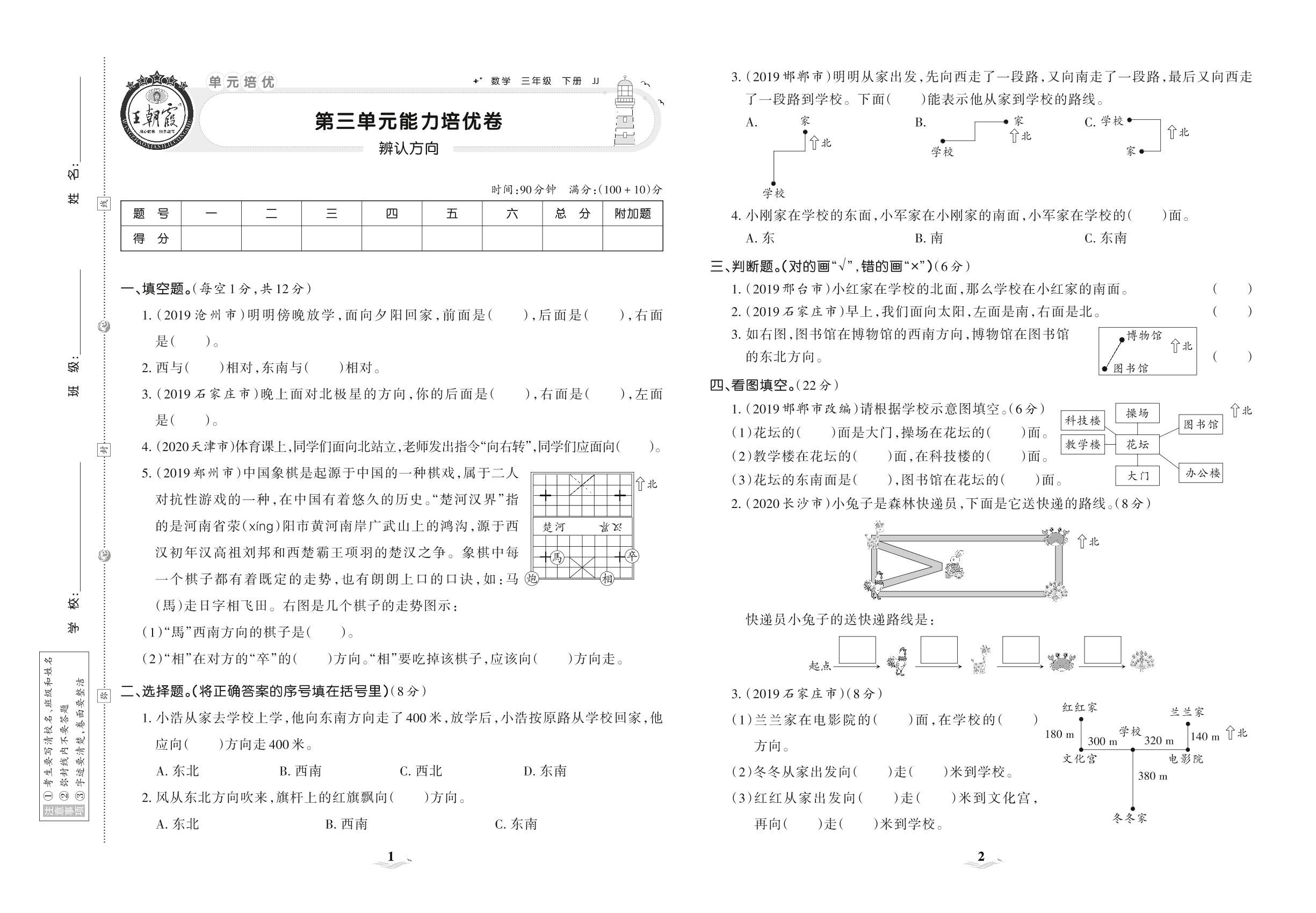 2021下册三年级数学冀教版 第三单元 能力培优卷