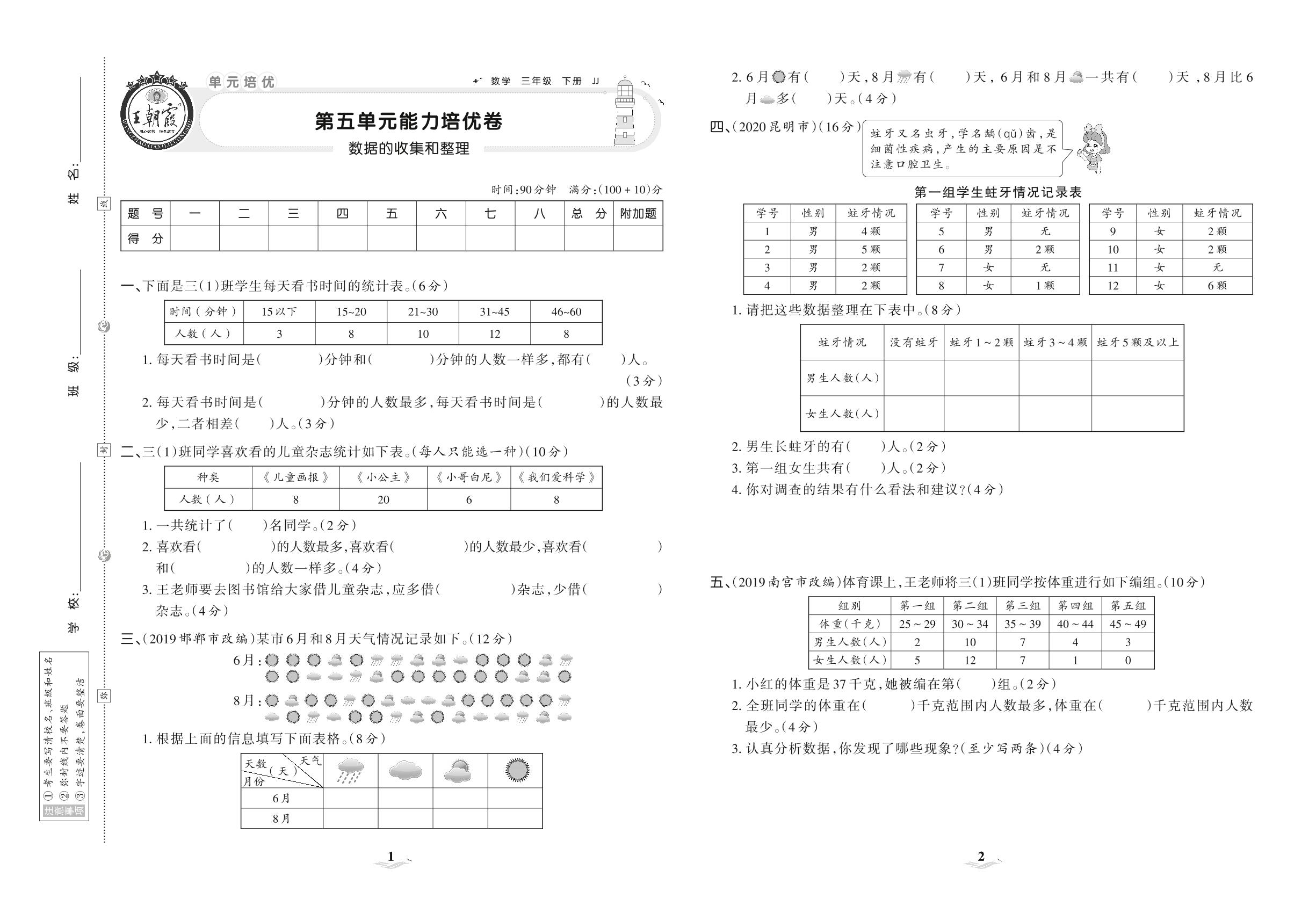 2021下册三年级数学冀教版 第五单元 能力培优卷