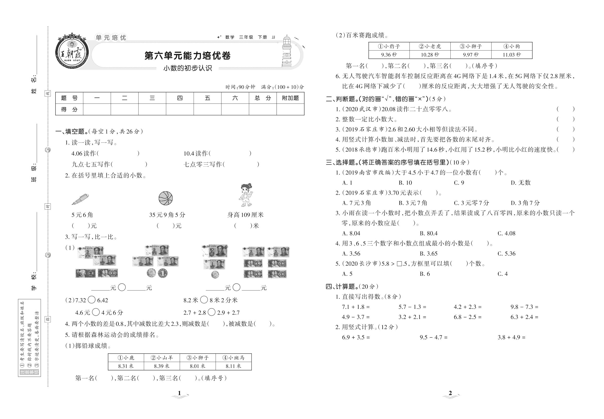 2021下册三年级数学冀教版 第六单元 能力培优卷