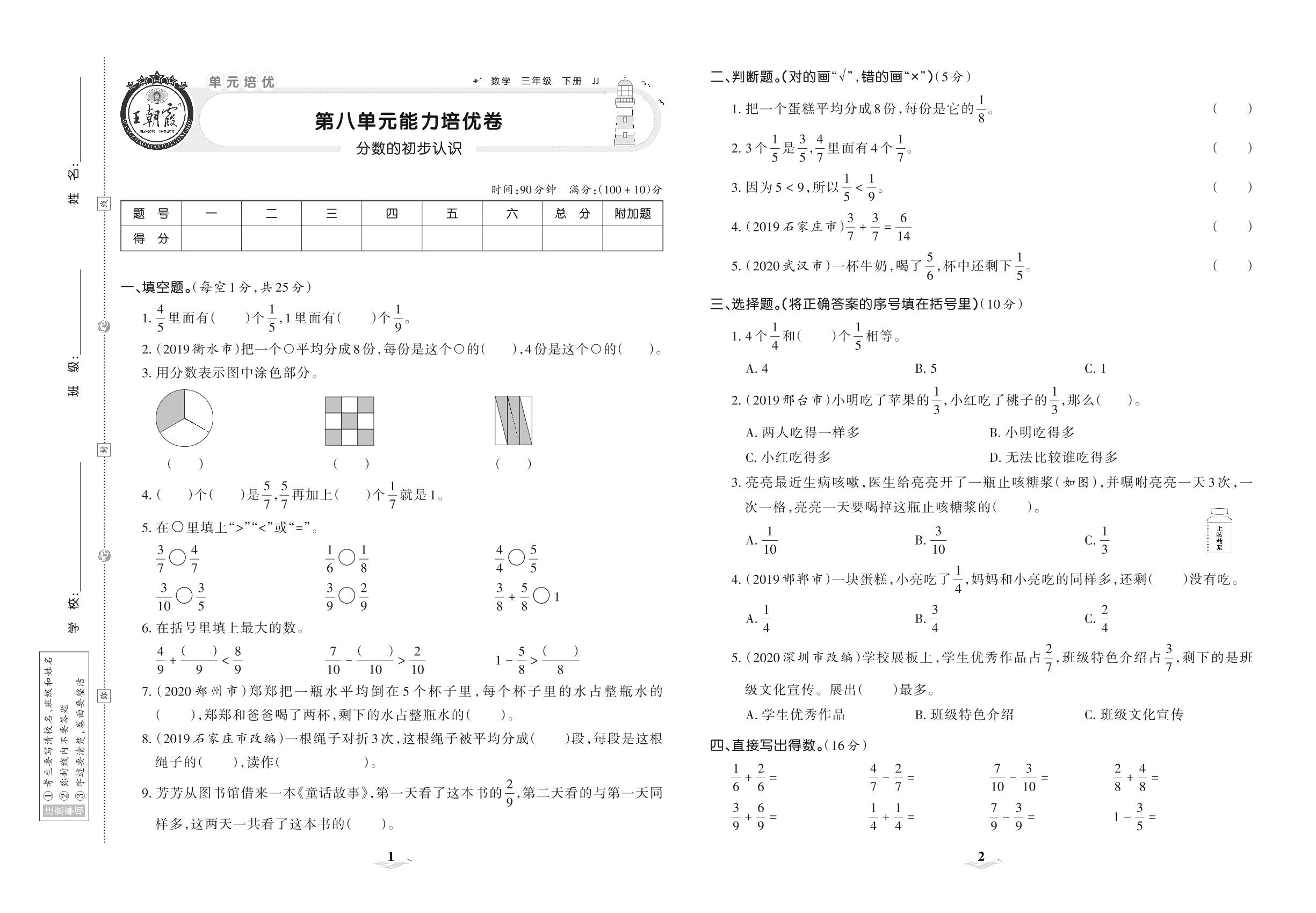 2021下册三年级数学冀教版 第八单元 能力培优卷