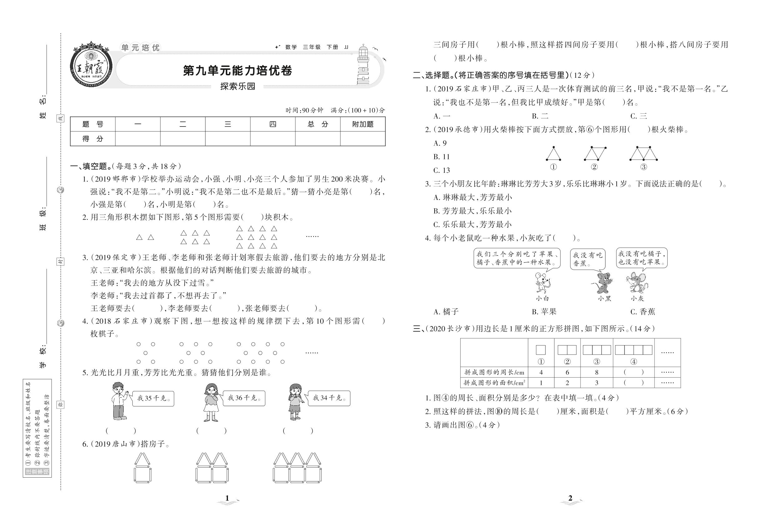 2021下册三年级数学冀教版 第九单元 能力培优卷
