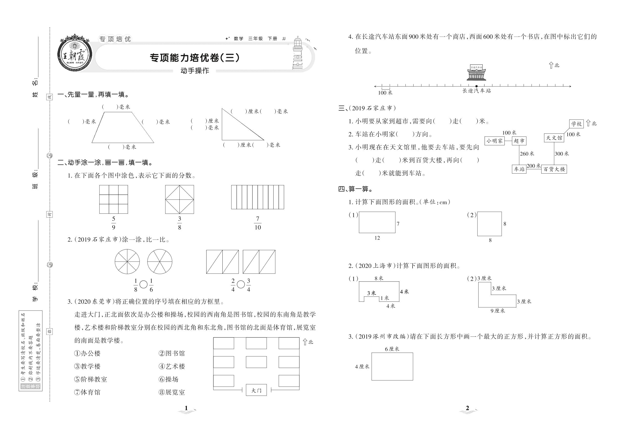 2021下册三年级数学冀教版 专项能力培优卷(三) 动手操作