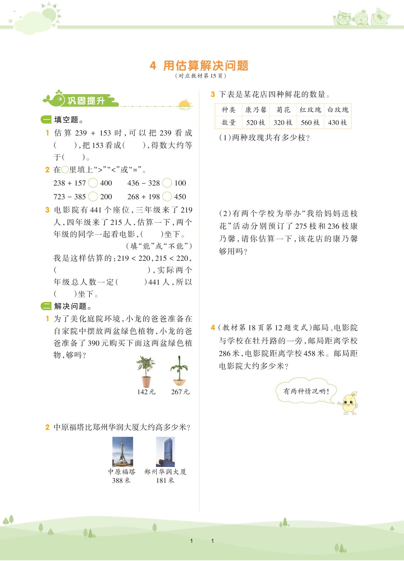 2020上册三年级数学人教版 第二单元 万以内的加法和减法(一)——4 用估算解决问题