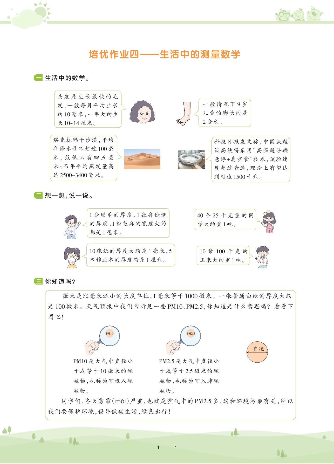 2020上册三年级数学人教版 培优作业四——生活中的测量数学