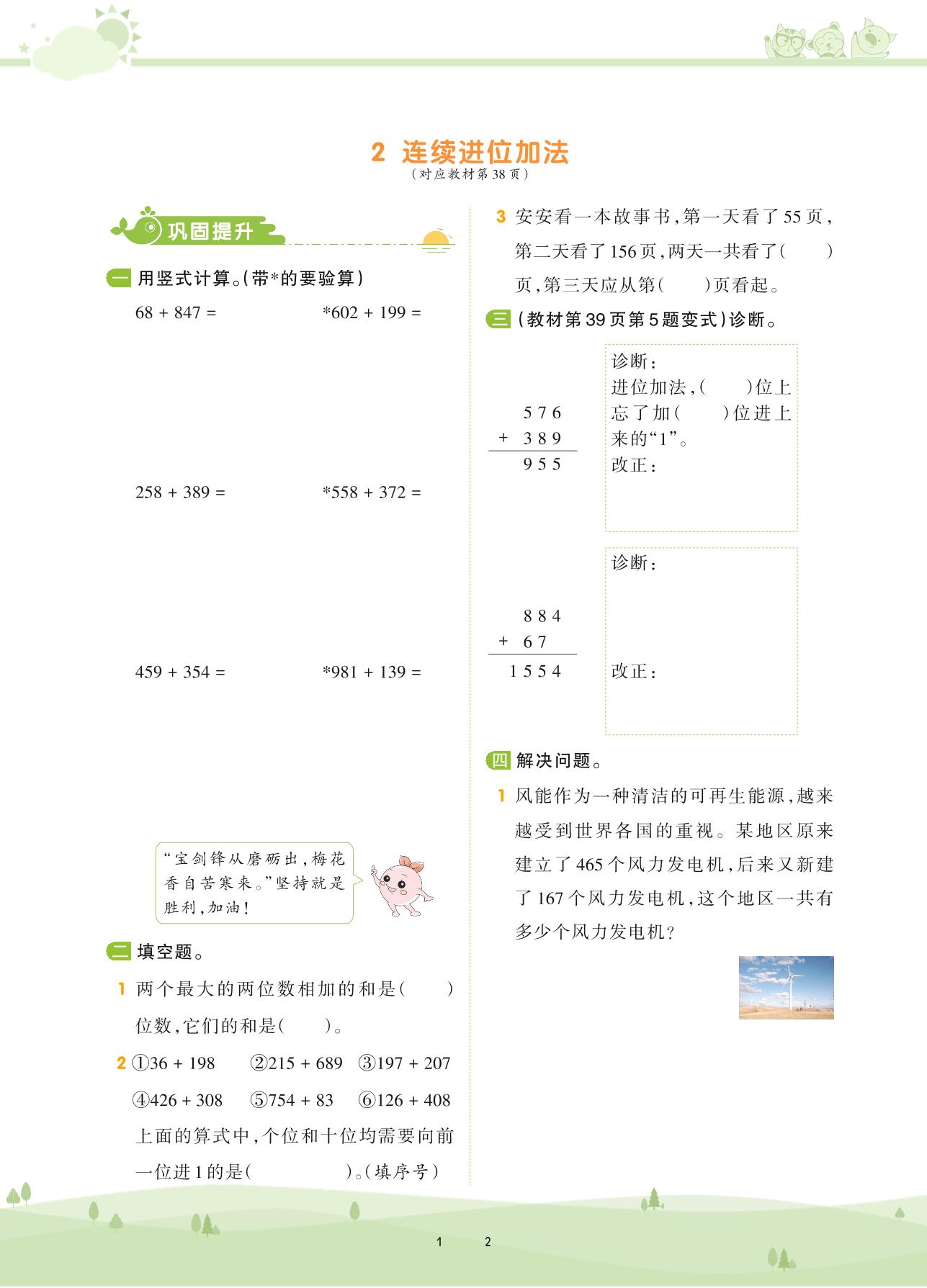 2020上册三年级数学人教版 第四单元 万以内的加法和减法(二)——2 连续进位加法