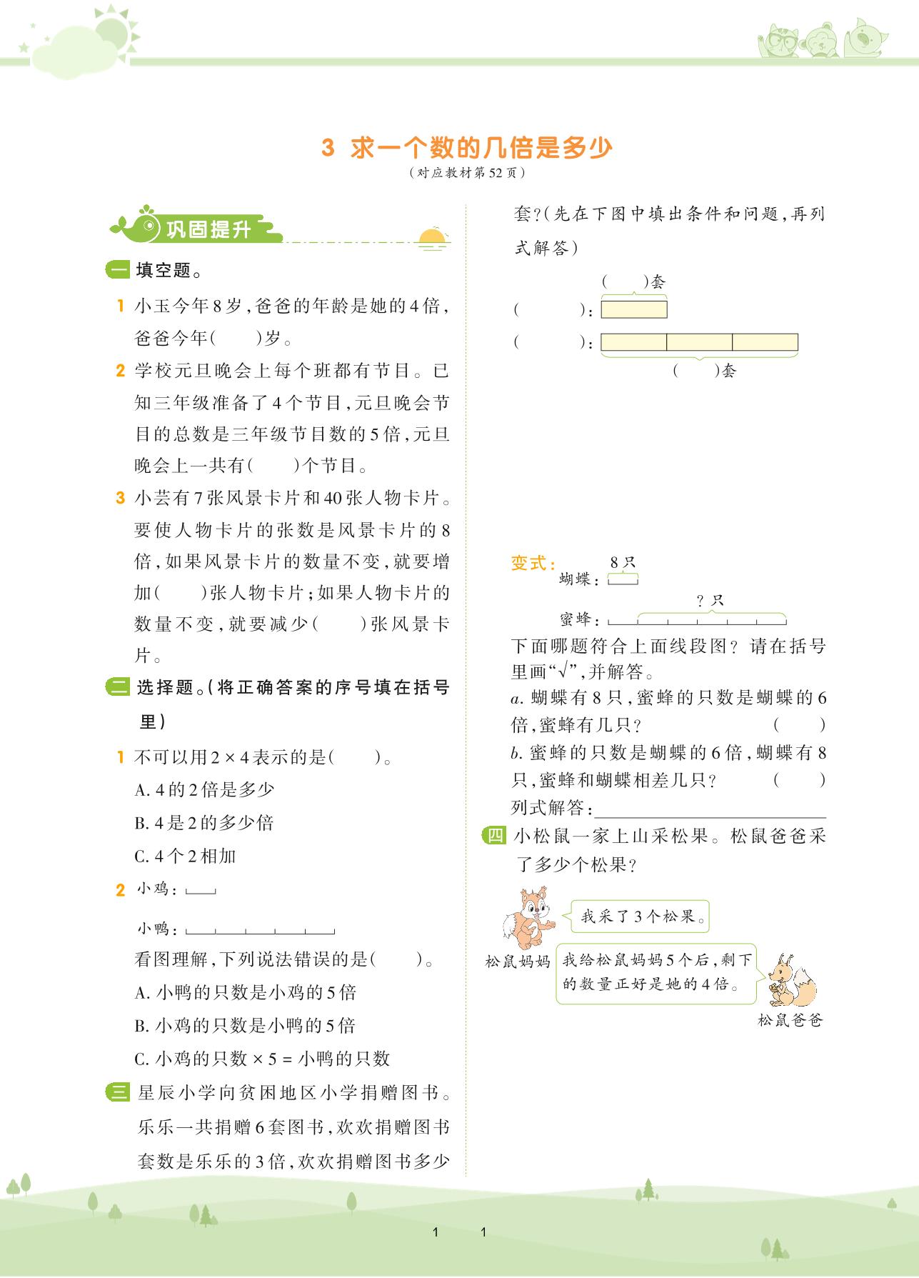 2020上册三年级数学人教版 第五单元 倍的认识——3 求一个数的几倍是多少