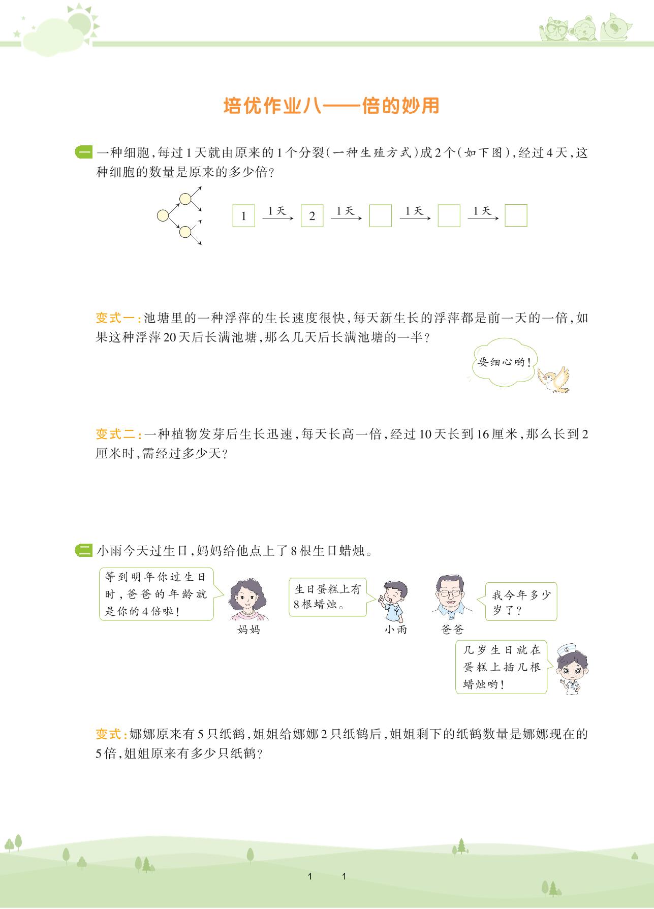 2020上册三年级数学人教版 第五单元 倍的认识——培优作业八——倍的妙用