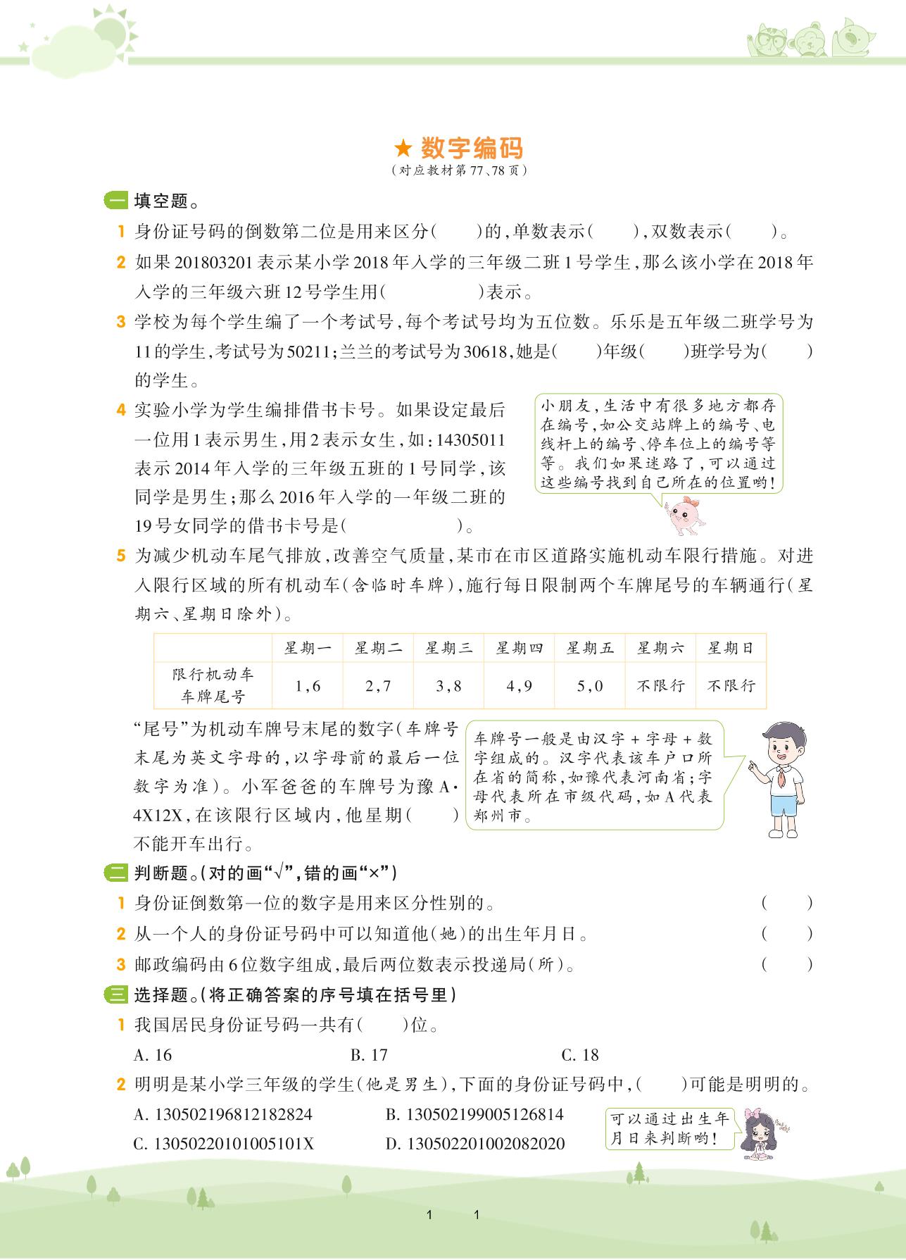 2020上册三年级数学人教版 第六单元 多位数乘一位数——数字编码