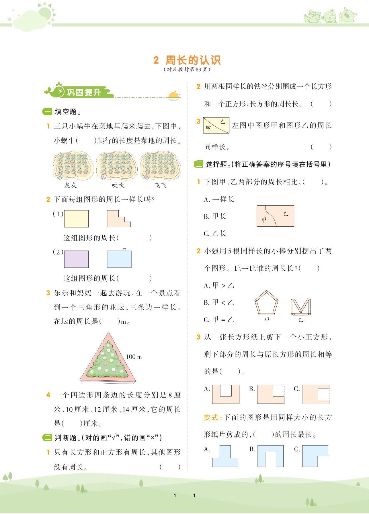 2020上册三年级数学人教版 第七单元 长方形和正方形——2 周长的认识