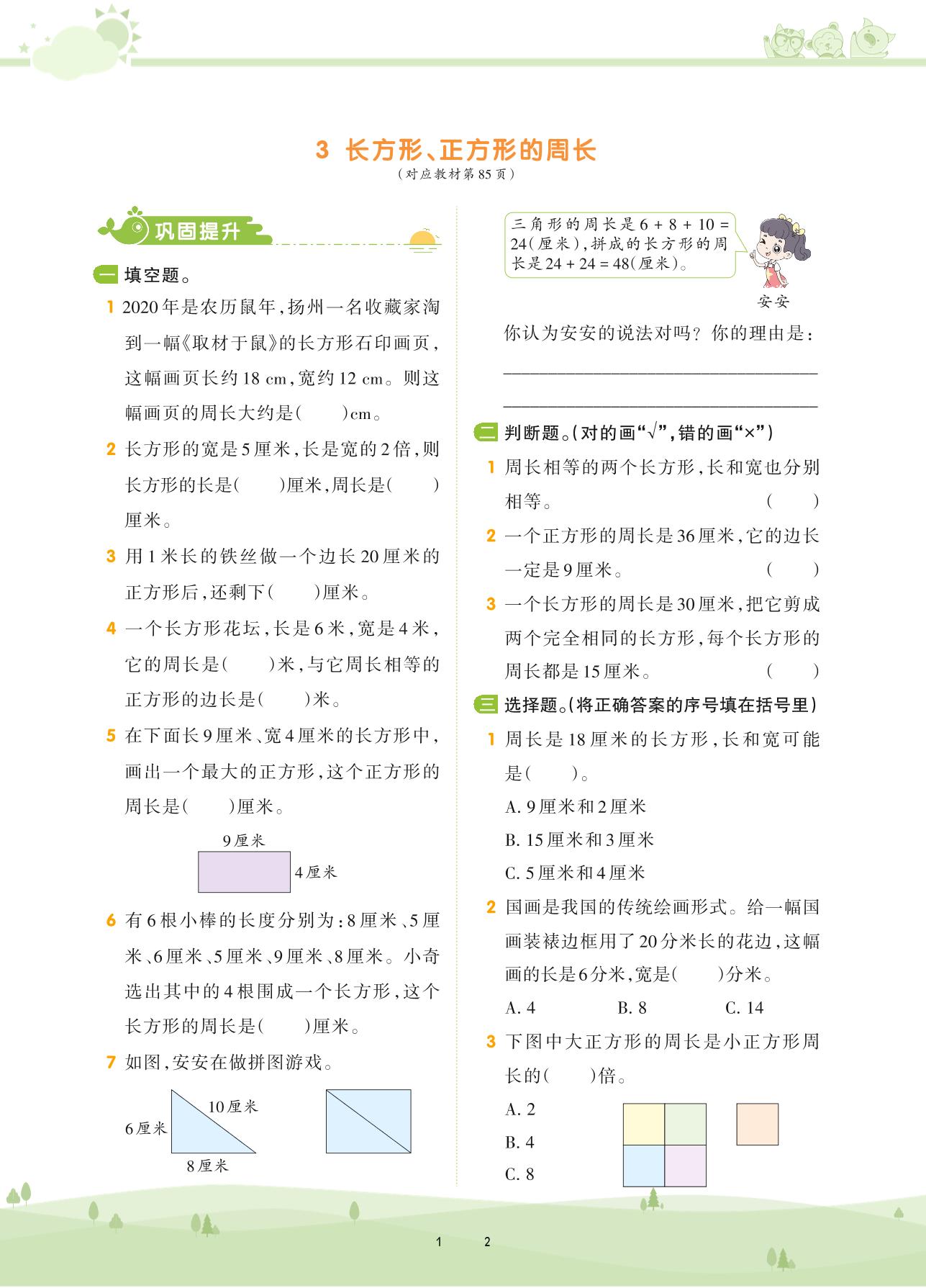 2020上册三年级数学人教版 第七单元 长方形和正方形——3 长方形、正方形的周长