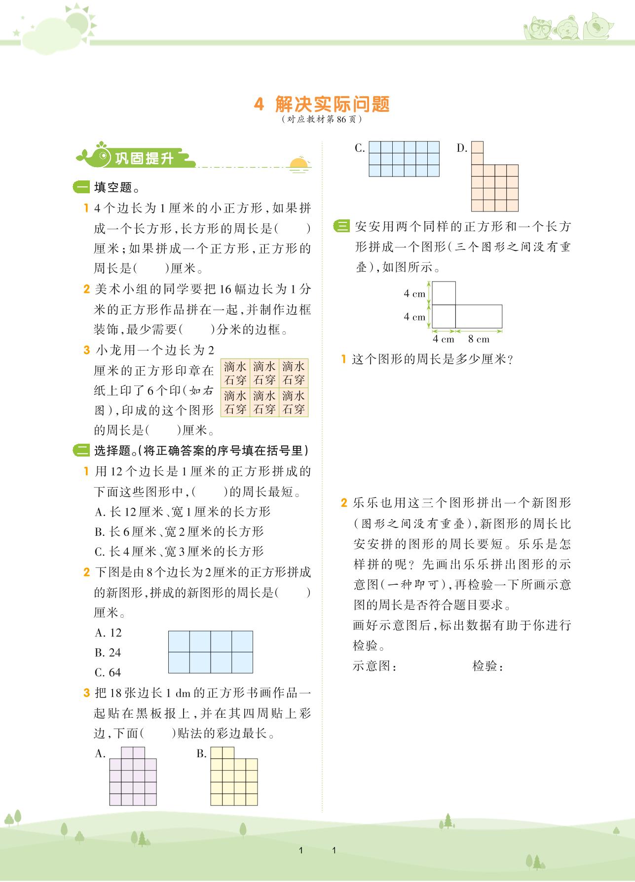 2020上册三年级数学人教版 第七单元 长方形和正方形——4 解决实际问题