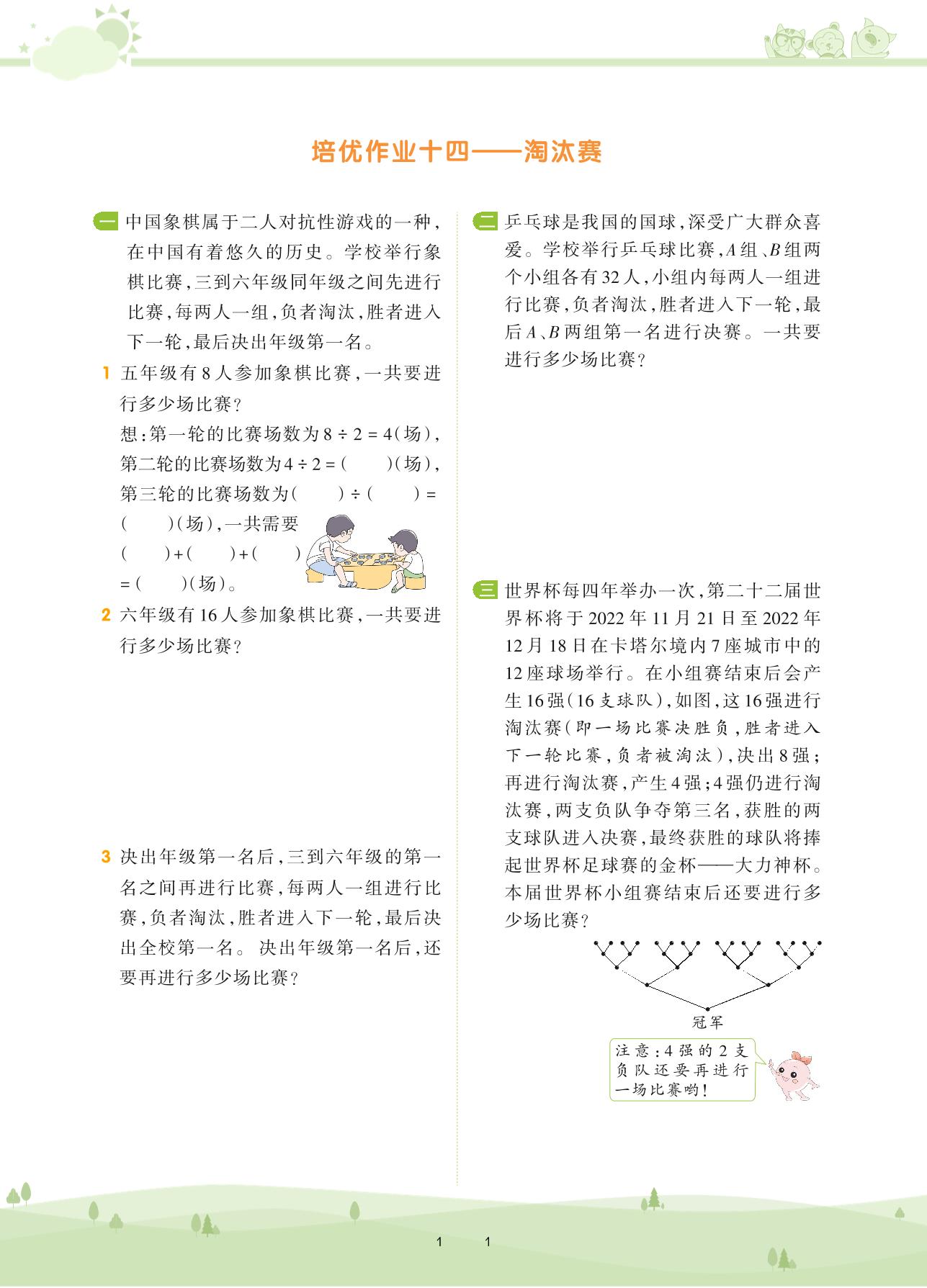2020上册三年级数学人教版 第九单元 数学广角——培优作业十四——淘汰赛