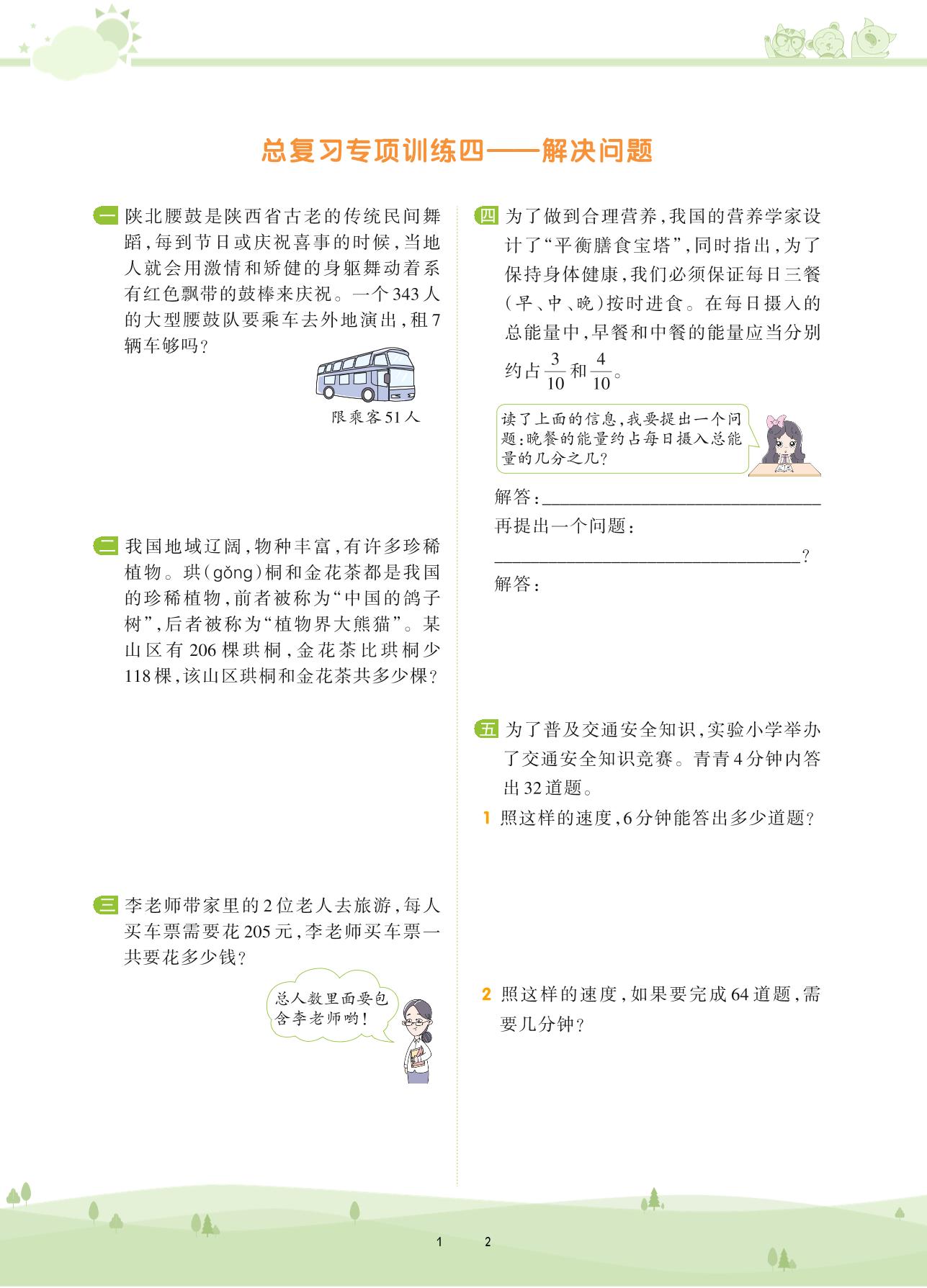 2020上册三年级数学人教版 第十单元 总复习——解决问题
