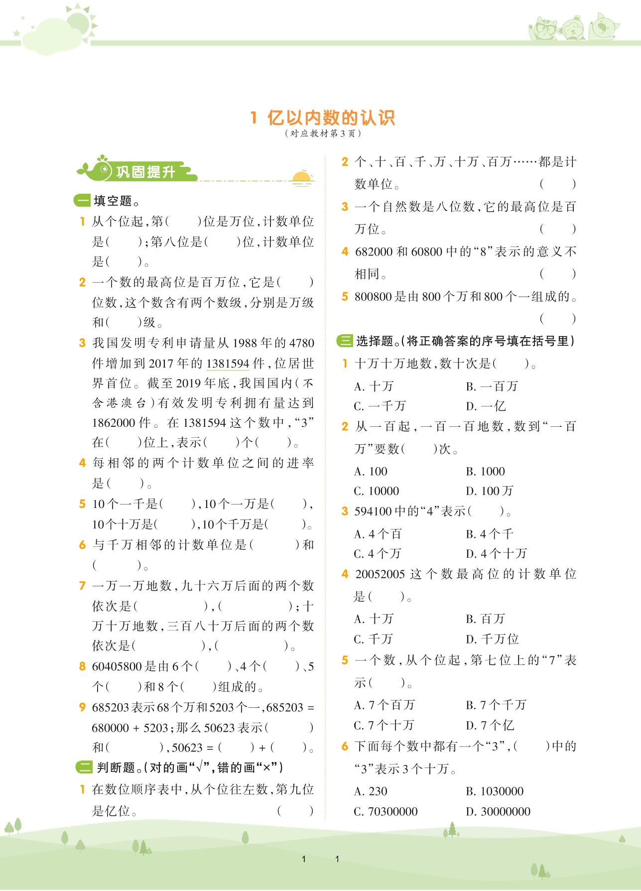 2020上册四年级数学人教版 第一单元 大数的认识——1 亿以内数的认识