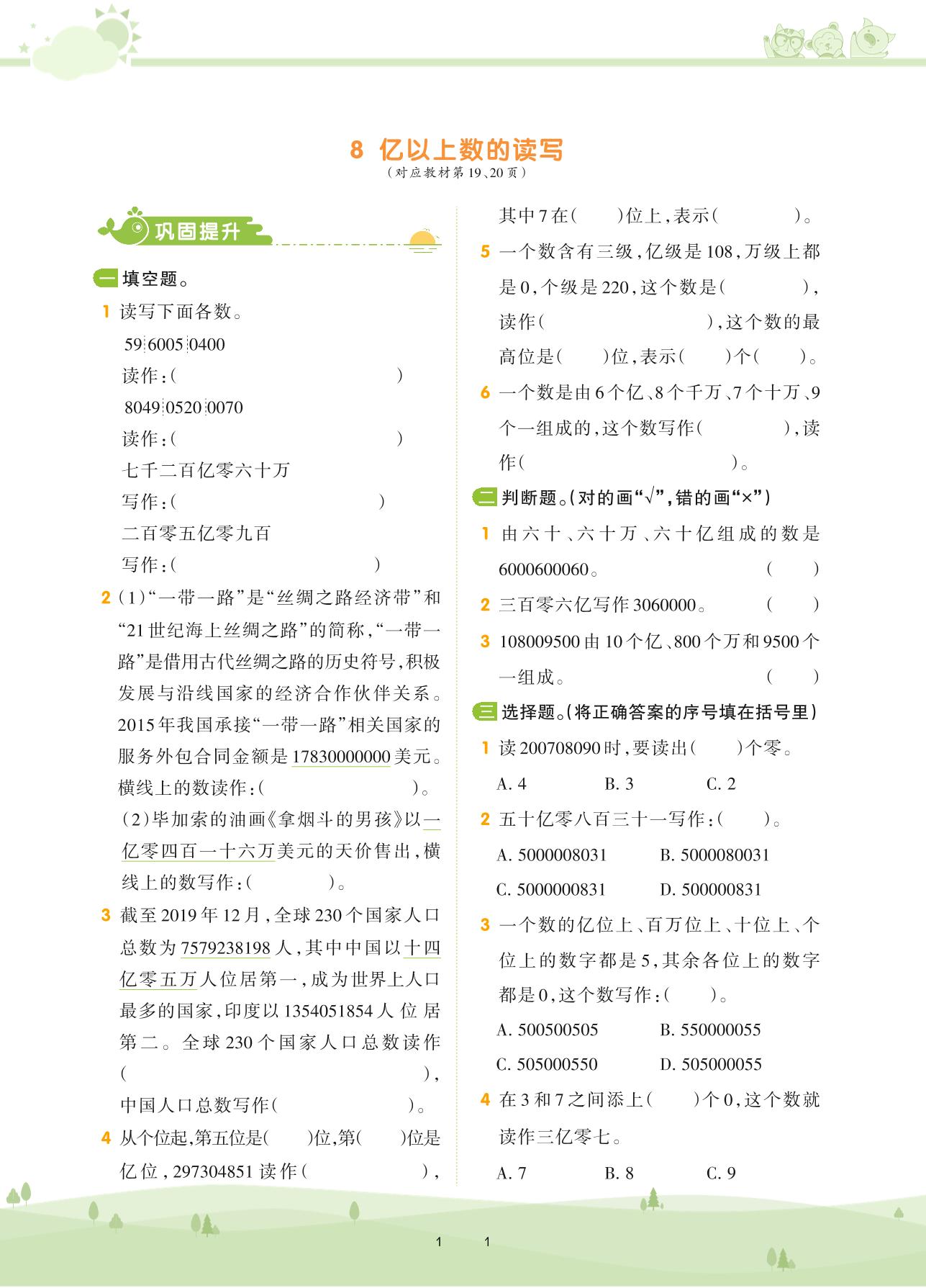 2020上册四年级数学人教版 第一单元 大数的认识——8 亿以上数的读写
