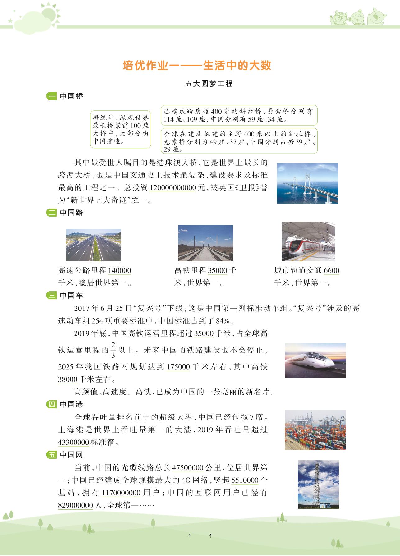 2020上册四年级数学人教版 第一单元 大数的认识——培优作业一——生活中的大数