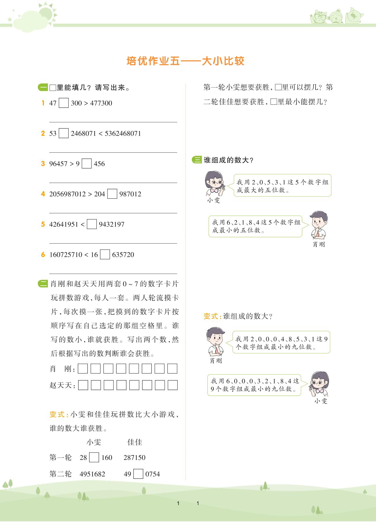 2020上册四年级数学人教版 第一单元 大数的认识——培优作业五——大小比较