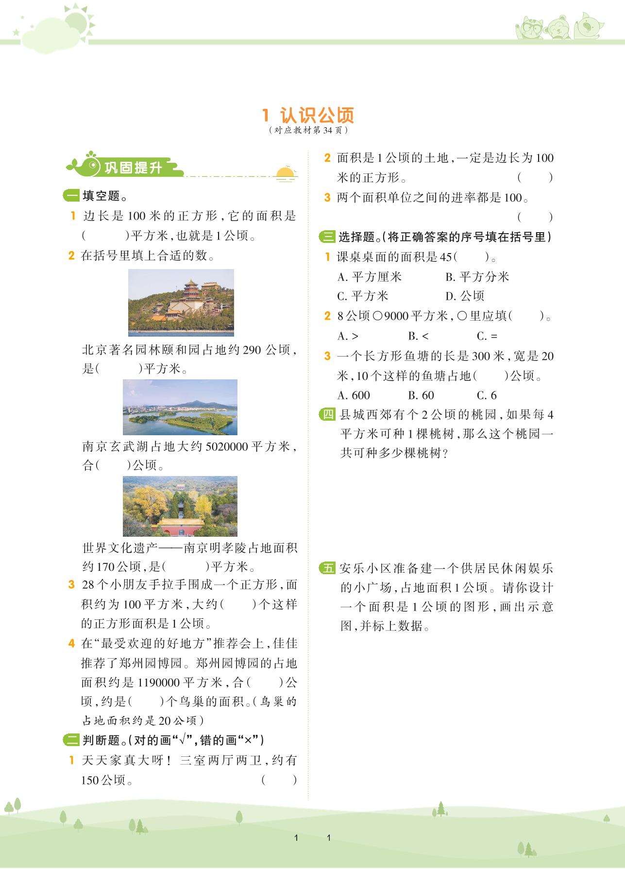 2020上册四年级数学人教版 第二单元 公顷和平方千米——1 认识公顷