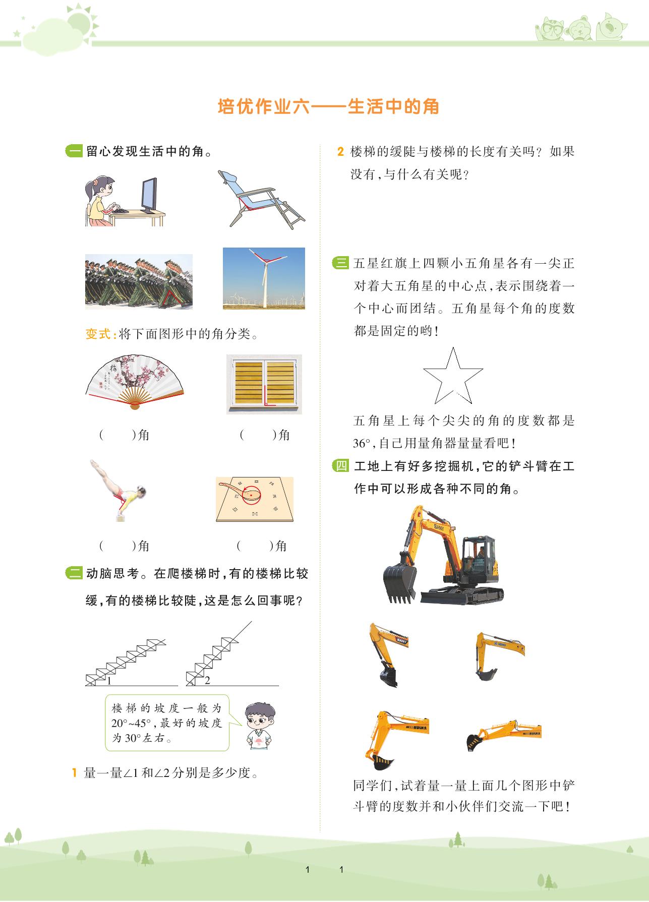 2020上册四年级数学人教版 第三单元 角的度量——培优作业六——生活中的角