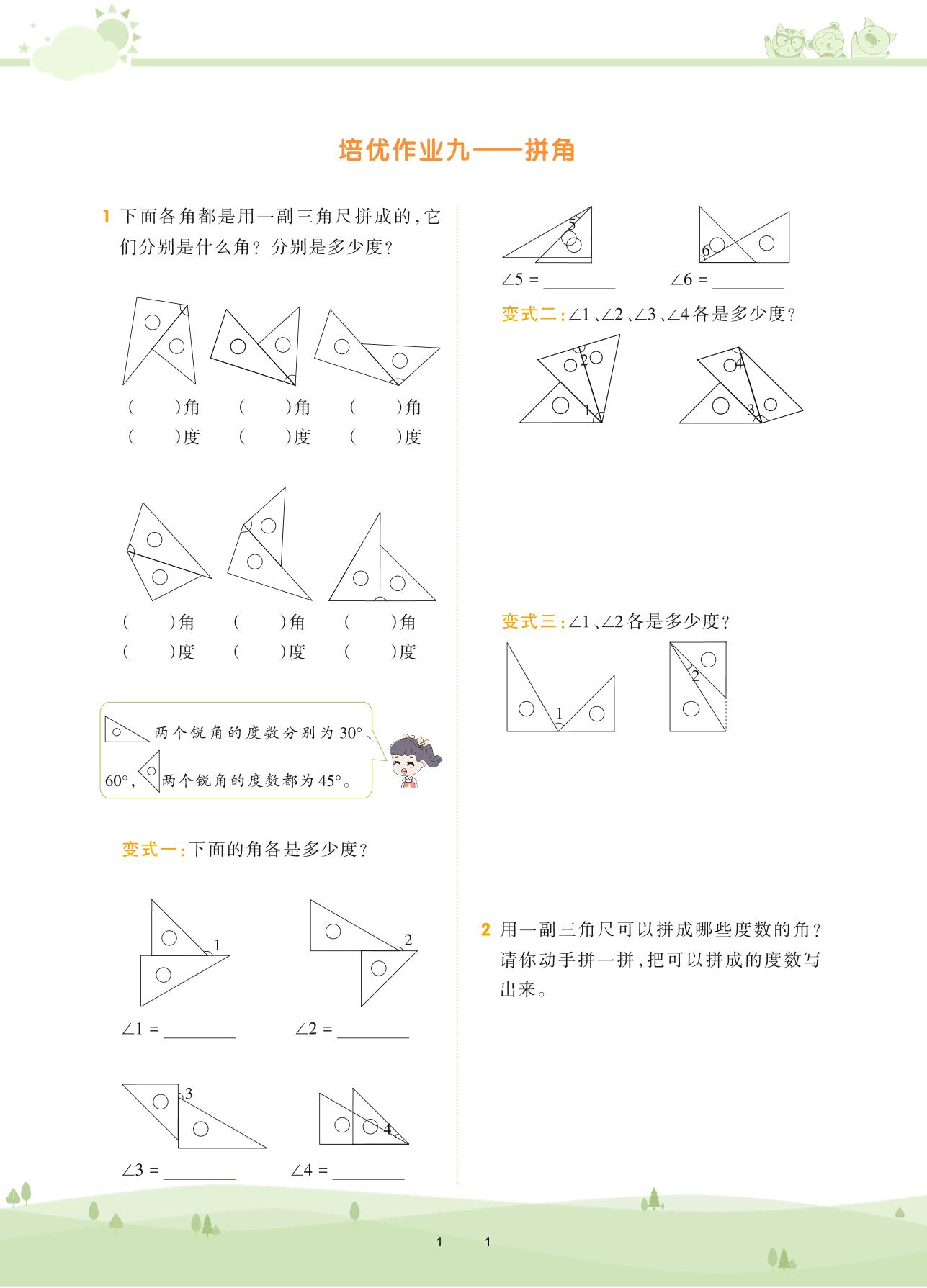 2020上册四年级数学人教版 第三单元 角的度量——培优作业九——拼角