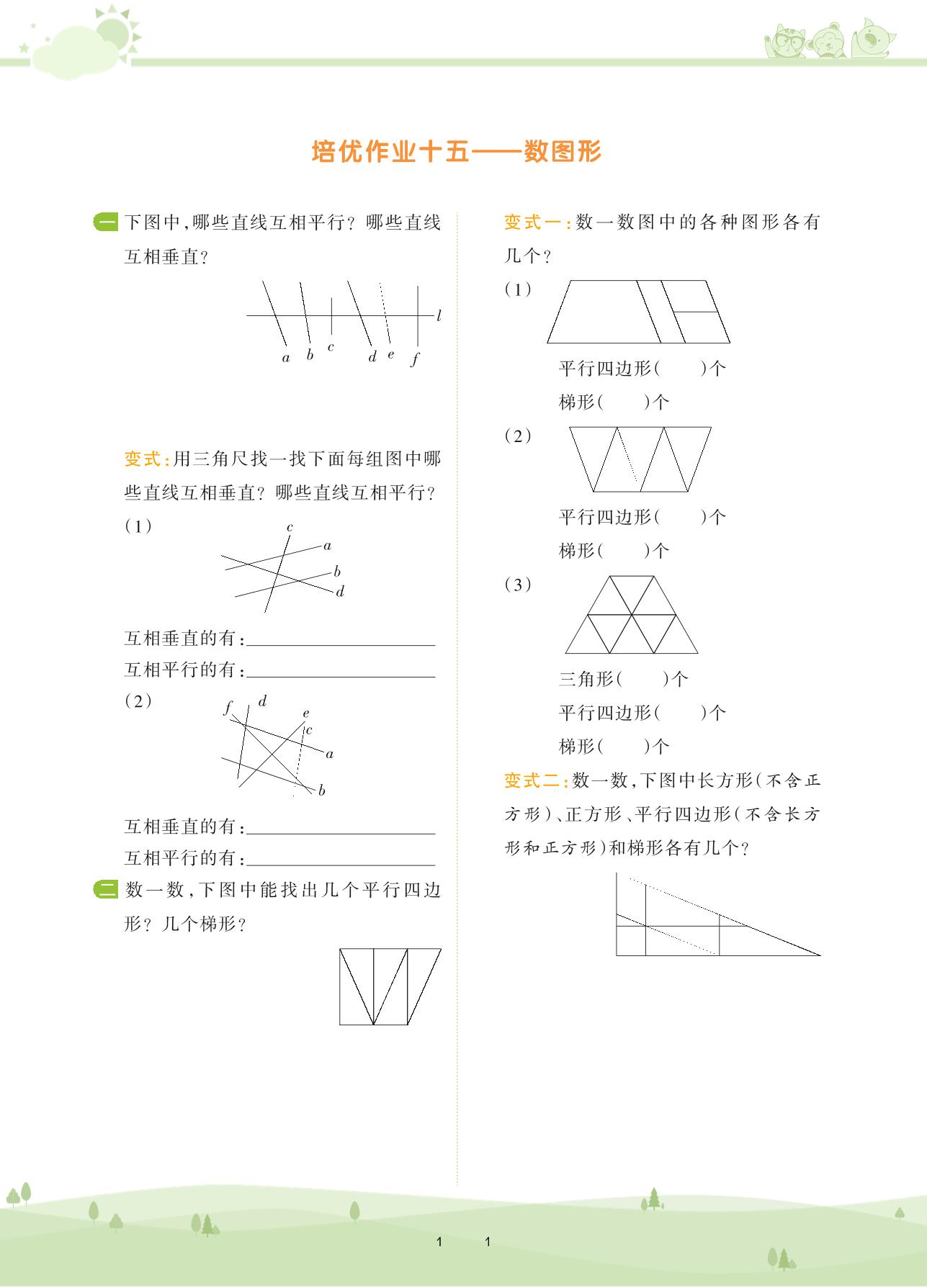 2020上册四年级数学人教版 第五单元 平行四边形和梯形——培优作业十五——数图形